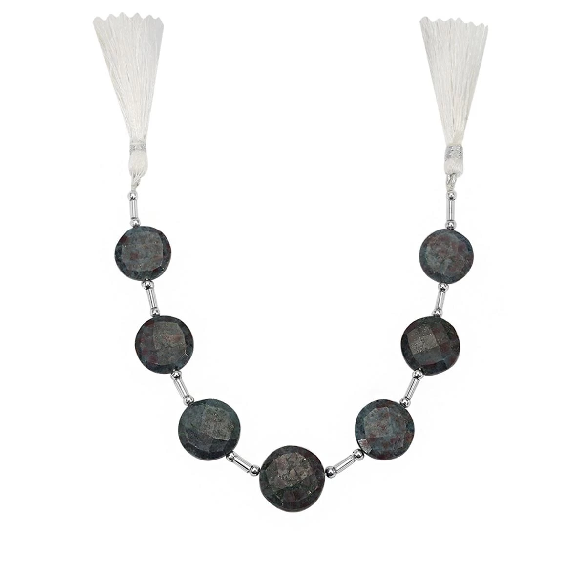 120cts Ruby With Kyanite Faceted Coin Approx 14 To 18mm, 20cm Strand With Spacers