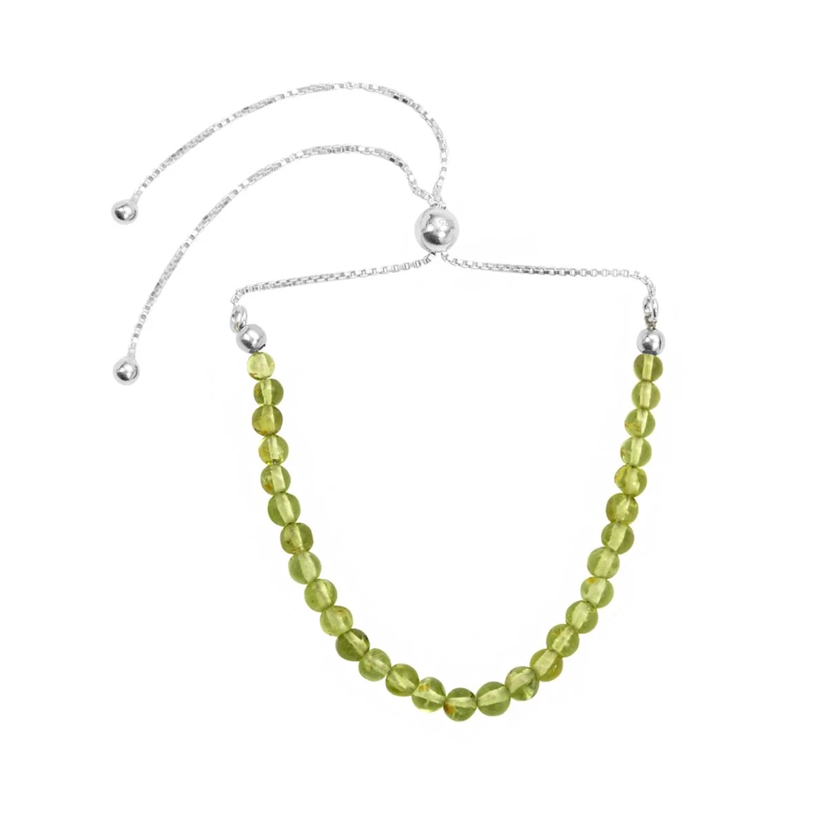 12cts Peridot Smooth Round Approx 3 To 4mm With Sterling Silver Slider Bracelet 10 Inch