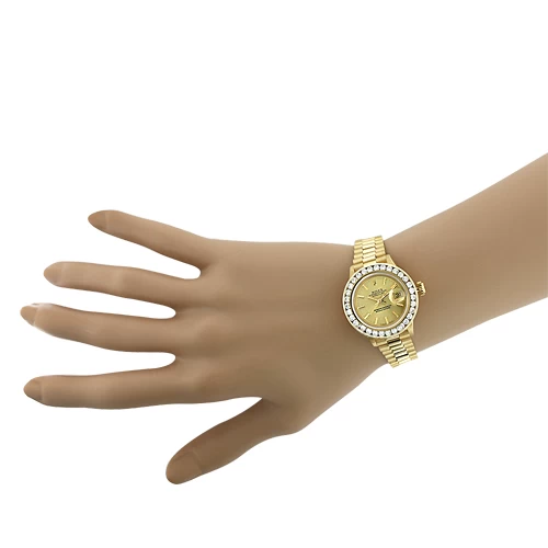 18K Gold Ladies ROLEX Oyster Diamond Watch Perpetual Datejust 3ct