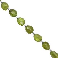 30cts Kashmir Peridot Faceted Tumble Approx 6×5 To 9x8mm, 15cm Strand With Spacers