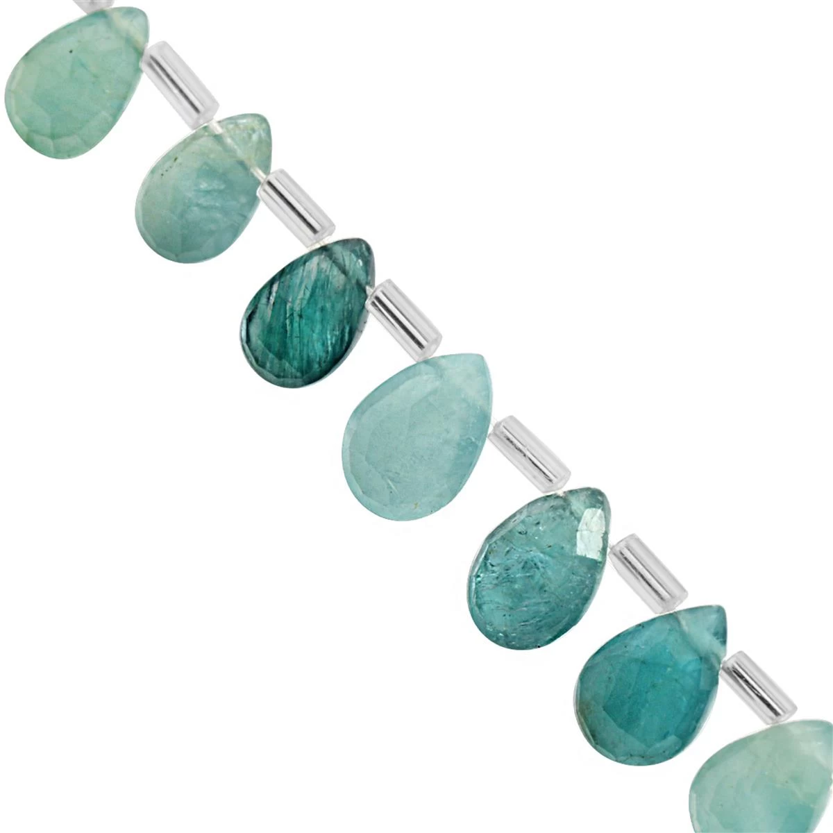 32cts Grandidierite Top Side Drill Graduated Faceted Pear Approx 7×5 To 13x8mm, 15cm Strand With Spacers