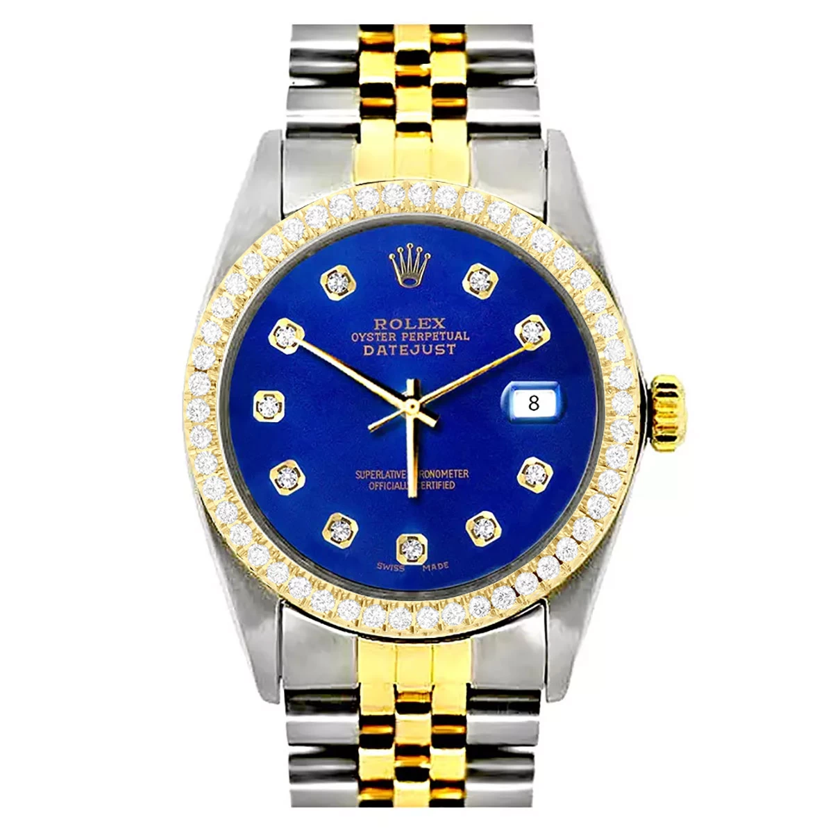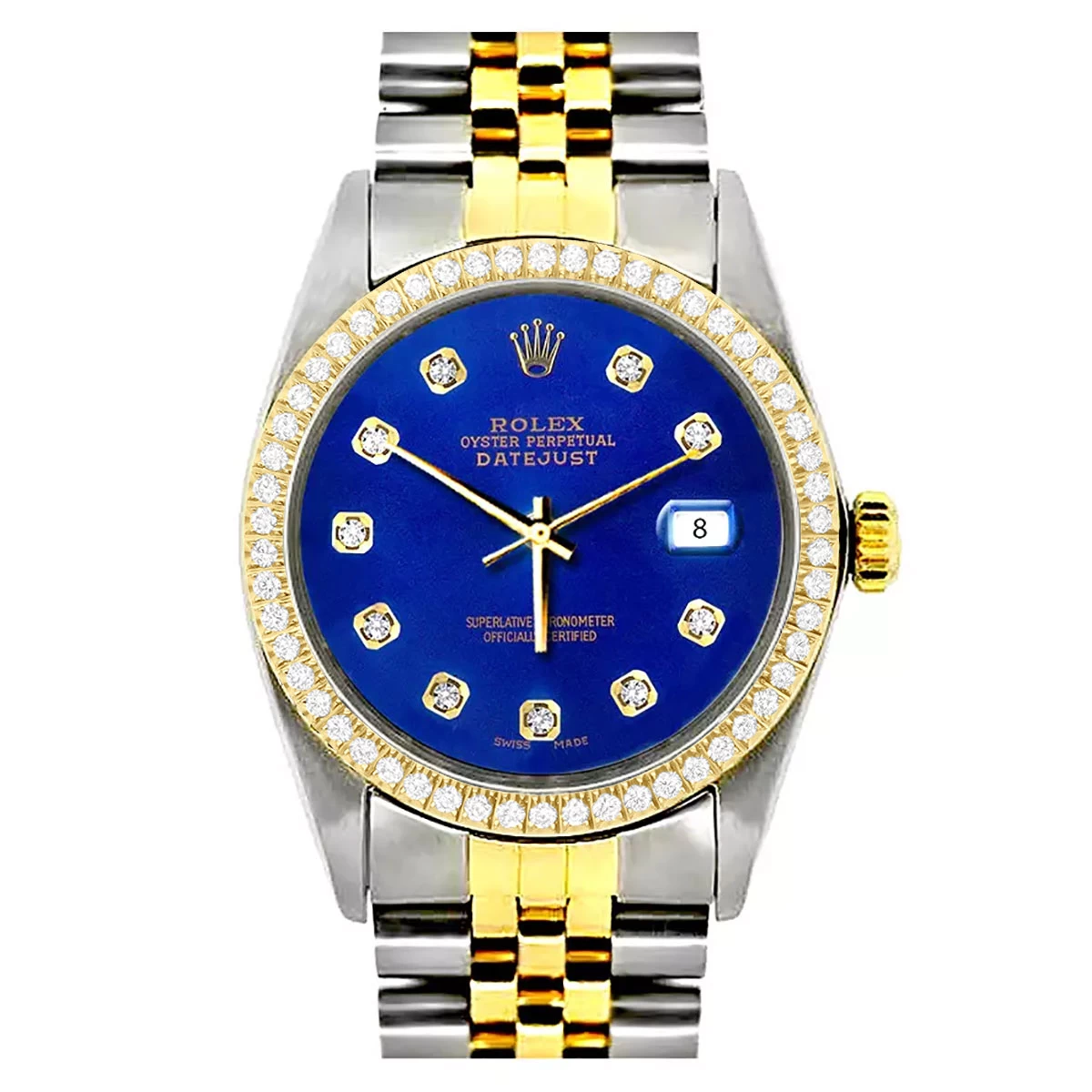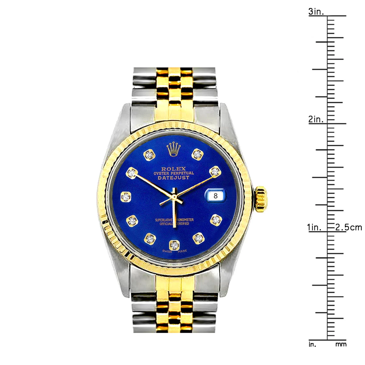36mm Rolex Datejust Men’s Diamond Watch Stainless Steel Yellow Gold Blue Dial