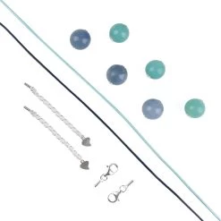Create ideal finished designs with this 3x Blue Aventurine Rounds & 3x Chinese Amazonite Rounds With Eyelets +Dark Blue & Metallic Blue Leather Cord, 1m Includes 2x 1″ extender chains with end tips & 2x Lobster Clasps with end tips.