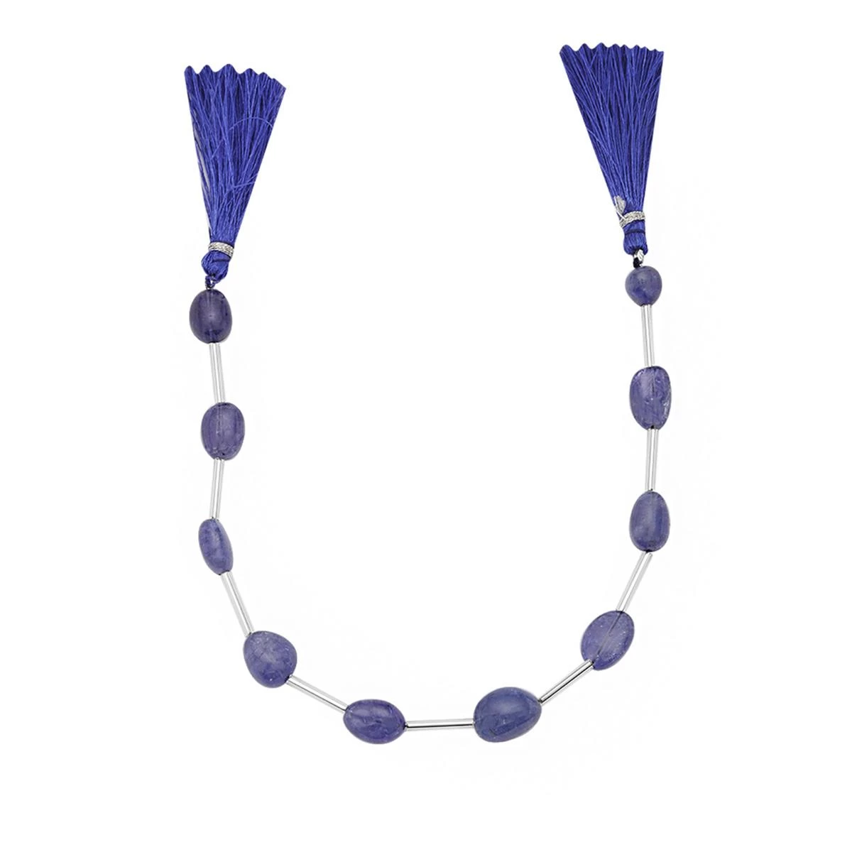 48cts Tanzanite Center Drill Smooth Tumble Approx 8×6 To 13.5x9mm, 20cm Strand With Spacers