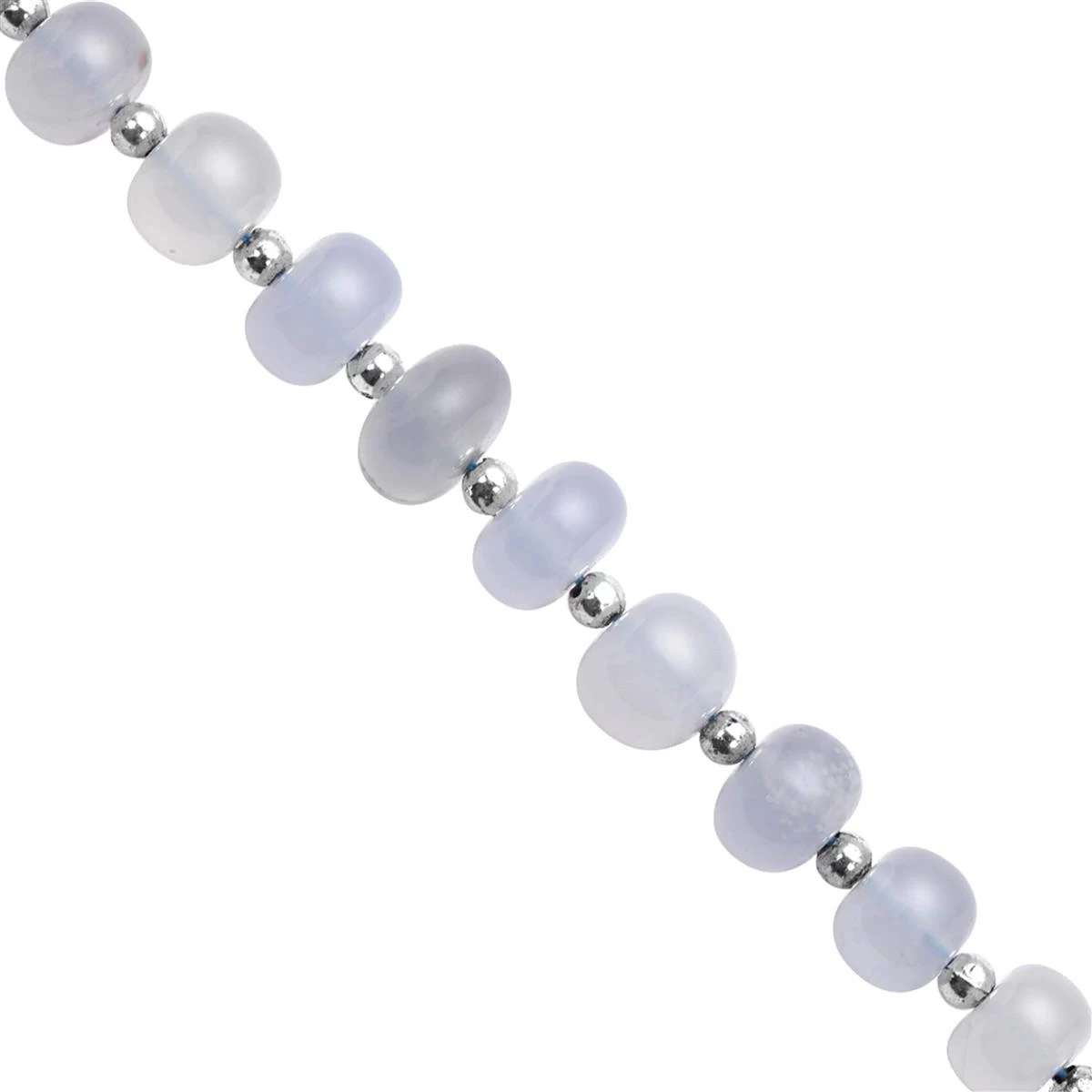 50cts Blue Chalcedony Smooth Rondelles Approx 5×3 To 9x6mm, 17cm Strand With Spacers