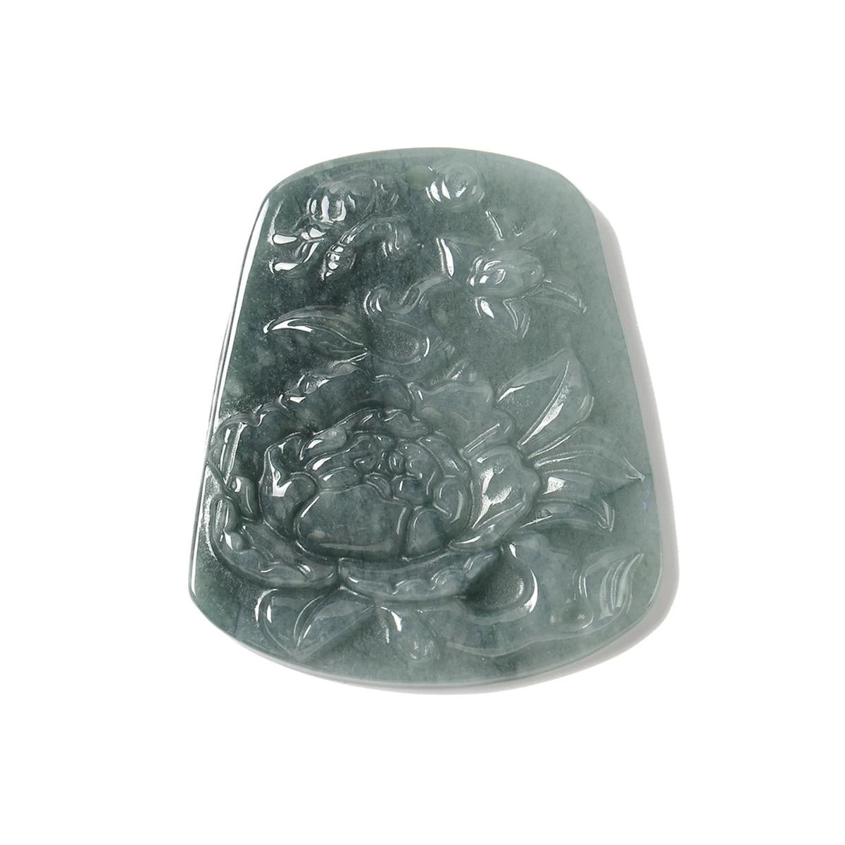 50cts Type A Olmec Jadeite Peony Pendant Approx 38x45mm, 1pcs