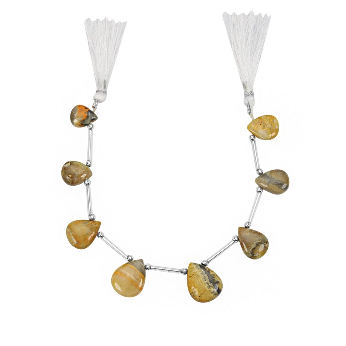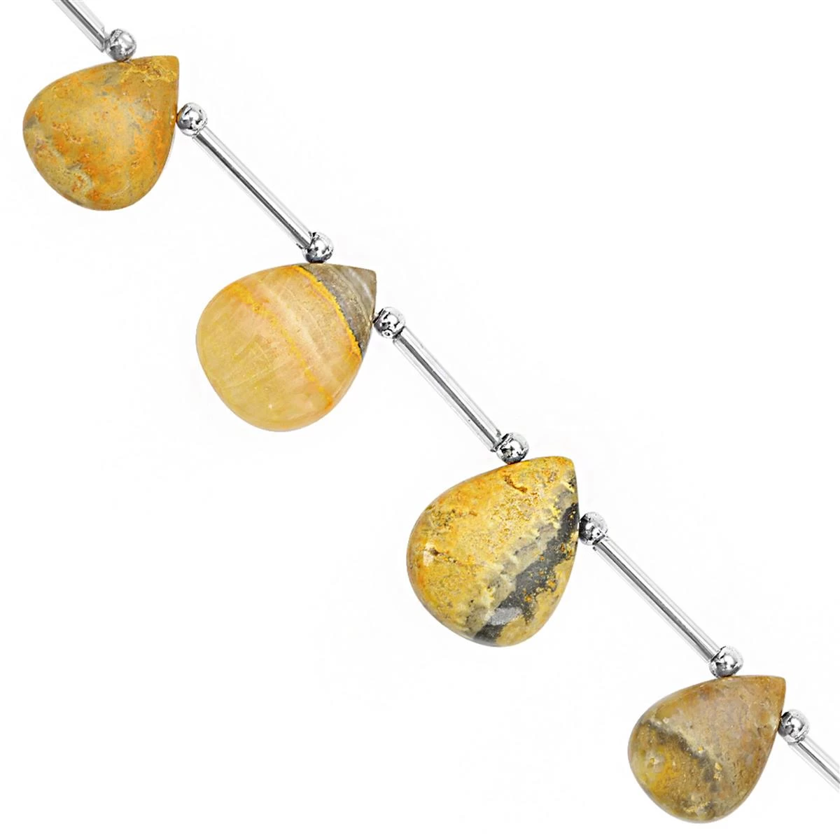 65cts Bumble Bee Jasper Smooth Pear Approx 12×9 To 20x15mm, 19cm Strand With Spacers
