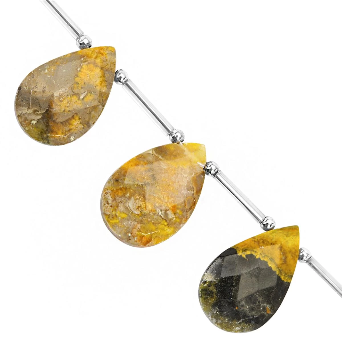 70cts Bumble Bee Jasper Faceted Puffy Pear Approx 18×10 To 27x17mm 11cm Strand With Spacers