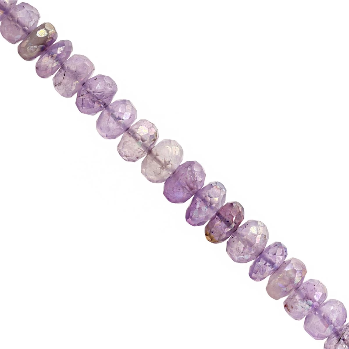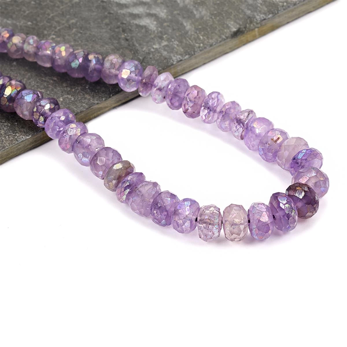 Make your jewellery collection more captivating with this fantastic strand of A.B. Coated Pink Amethyst Faceted Rondelles .