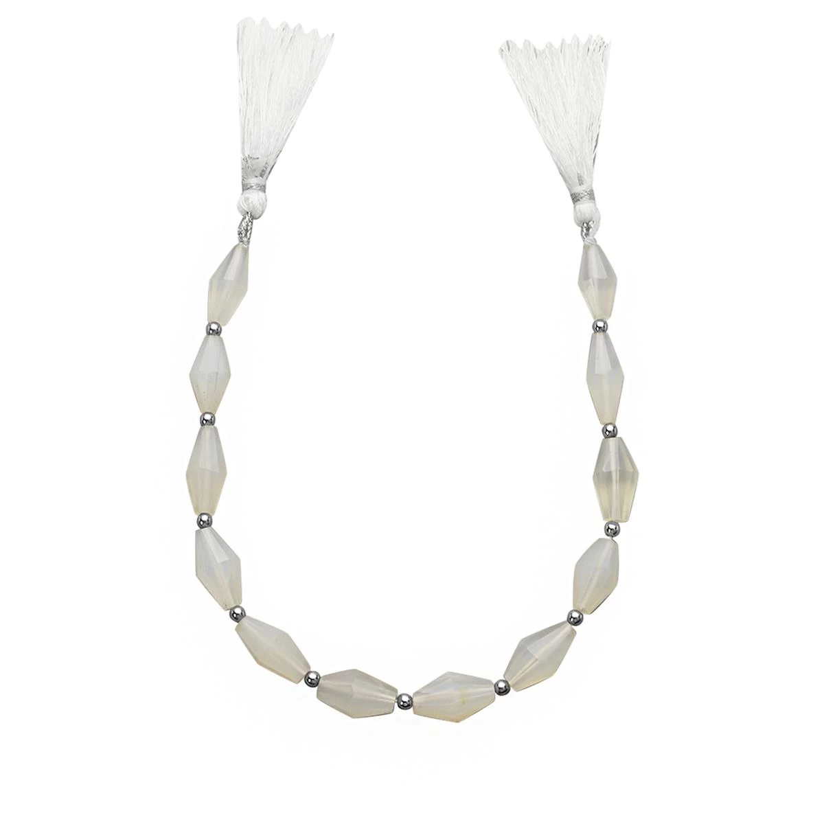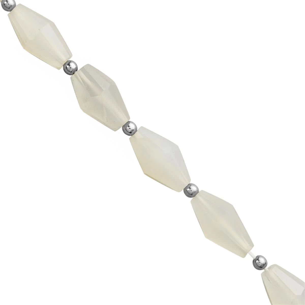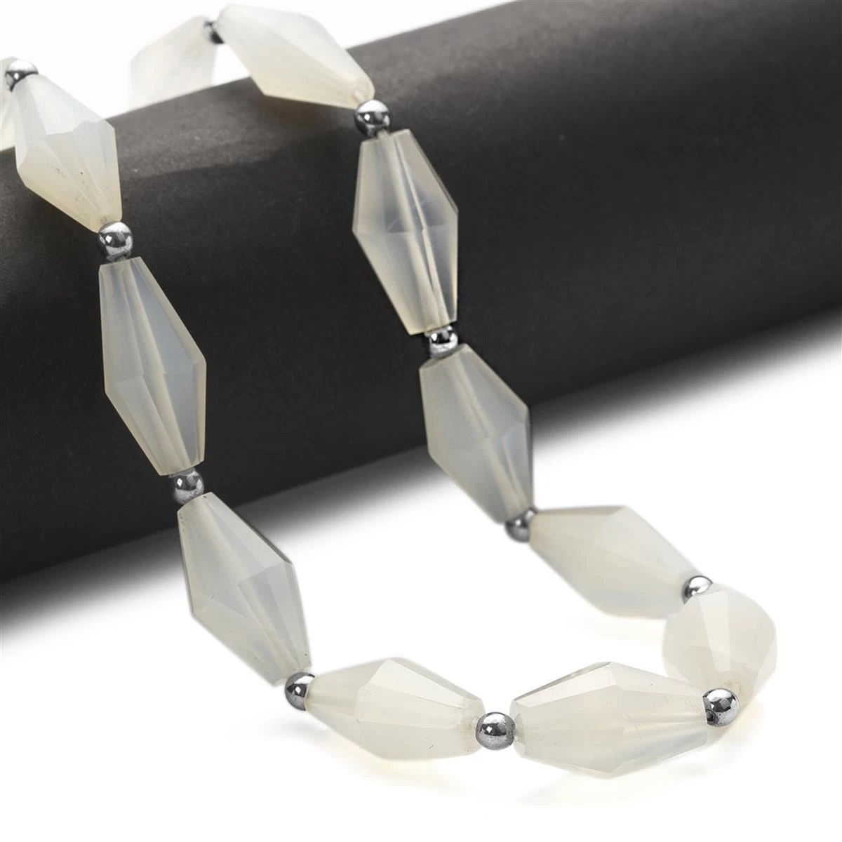 75cts Branca Onyx Faceted Long Bicone Approx 14×7 To 18x10mm 20cm With Hamatite Spacers