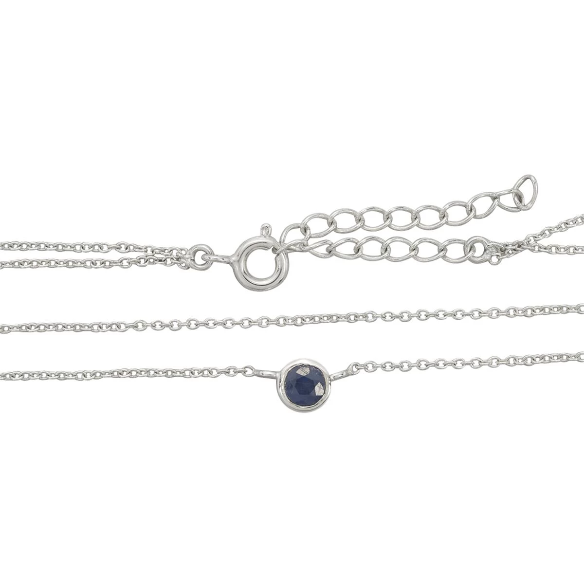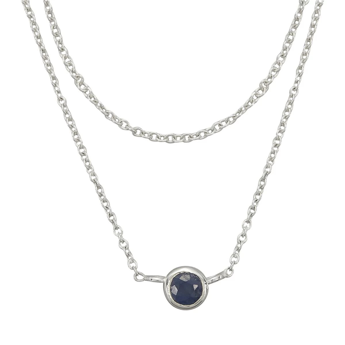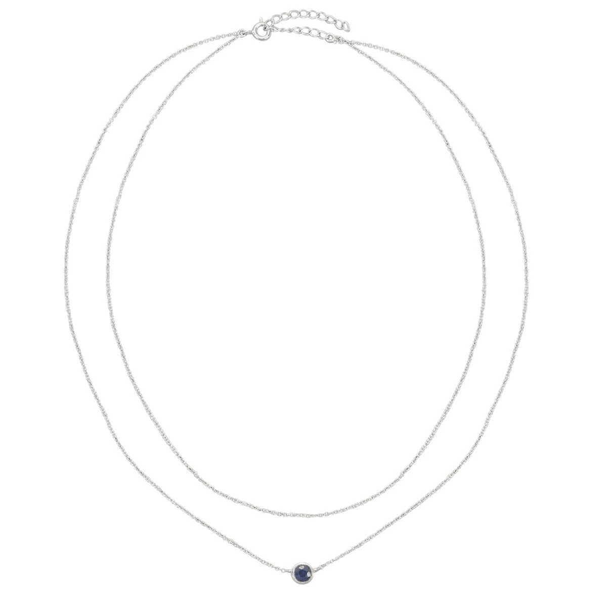 925 Sterling Silver 2 Row Cable Chain Necklace With Blue Sapphire Charm 16″ + 2″