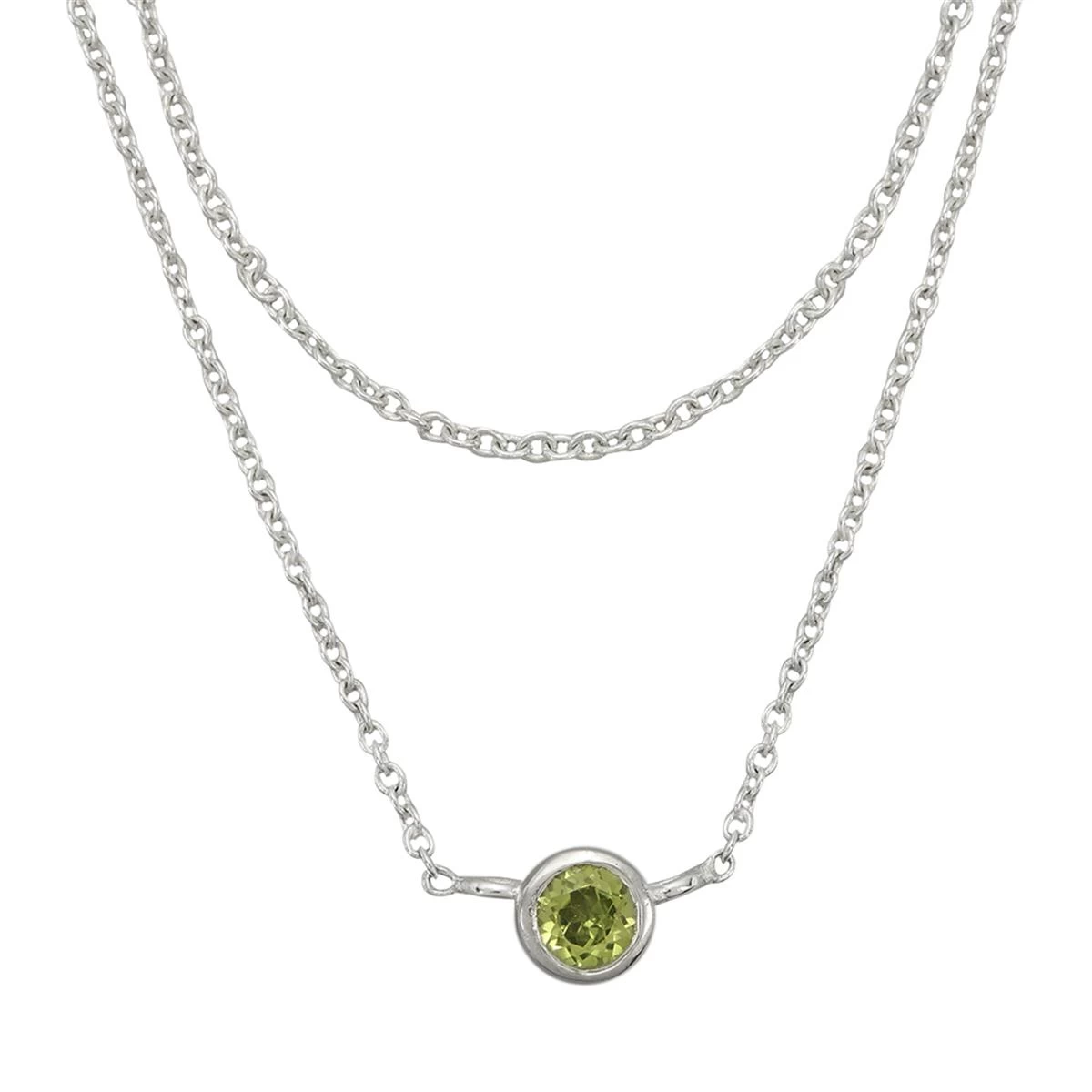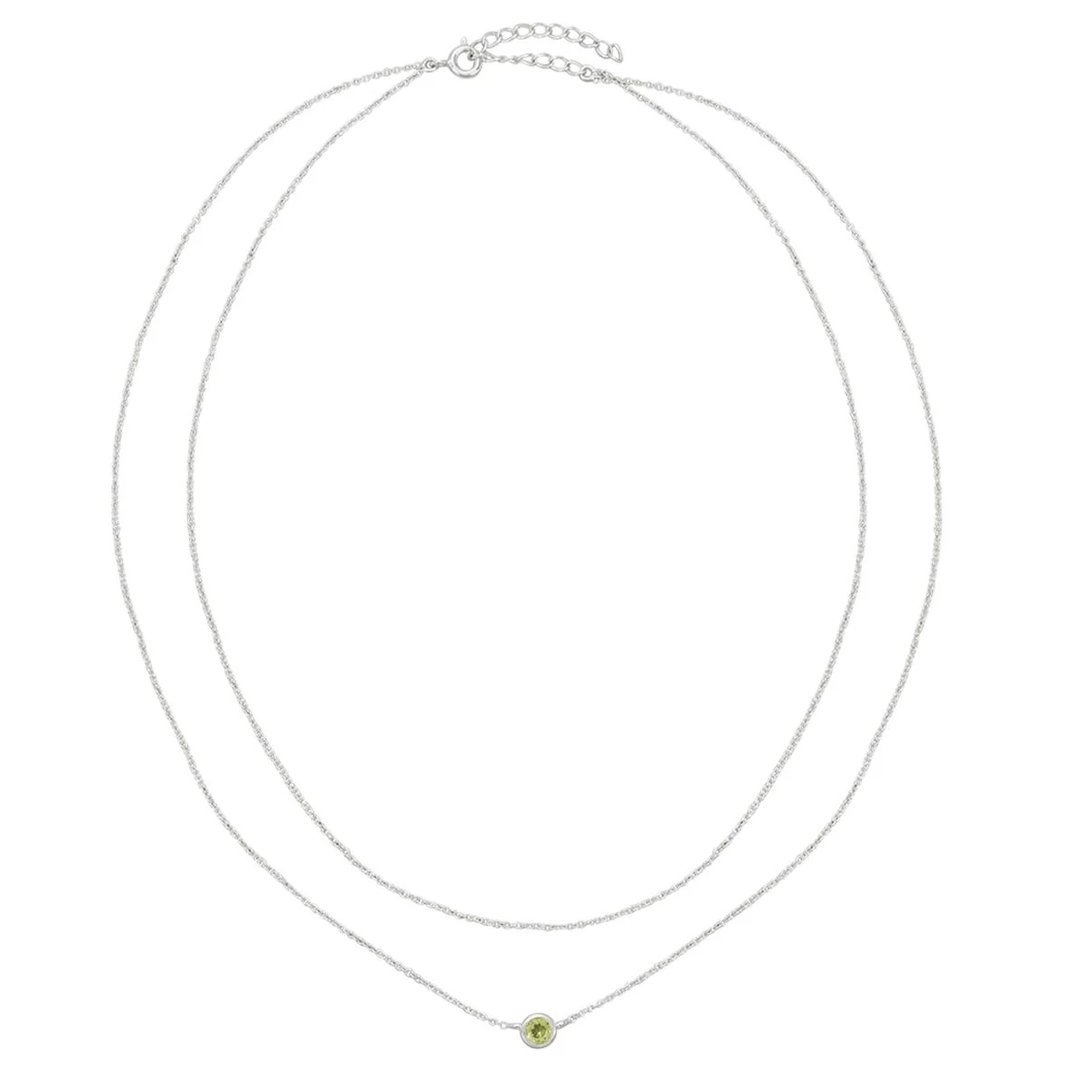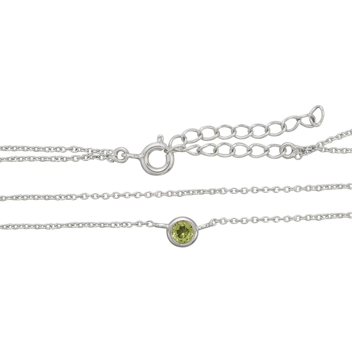925 Sterling Silver 2 Row Cable Chain Necklace With Peridot Charm 16″ + 2″