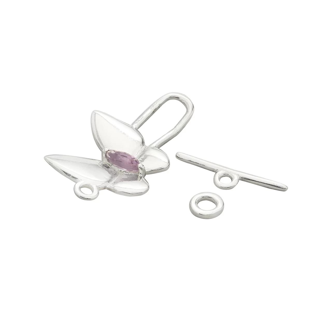925 Sterling Silver Butterfly Toggle Clasp With Amethyst.