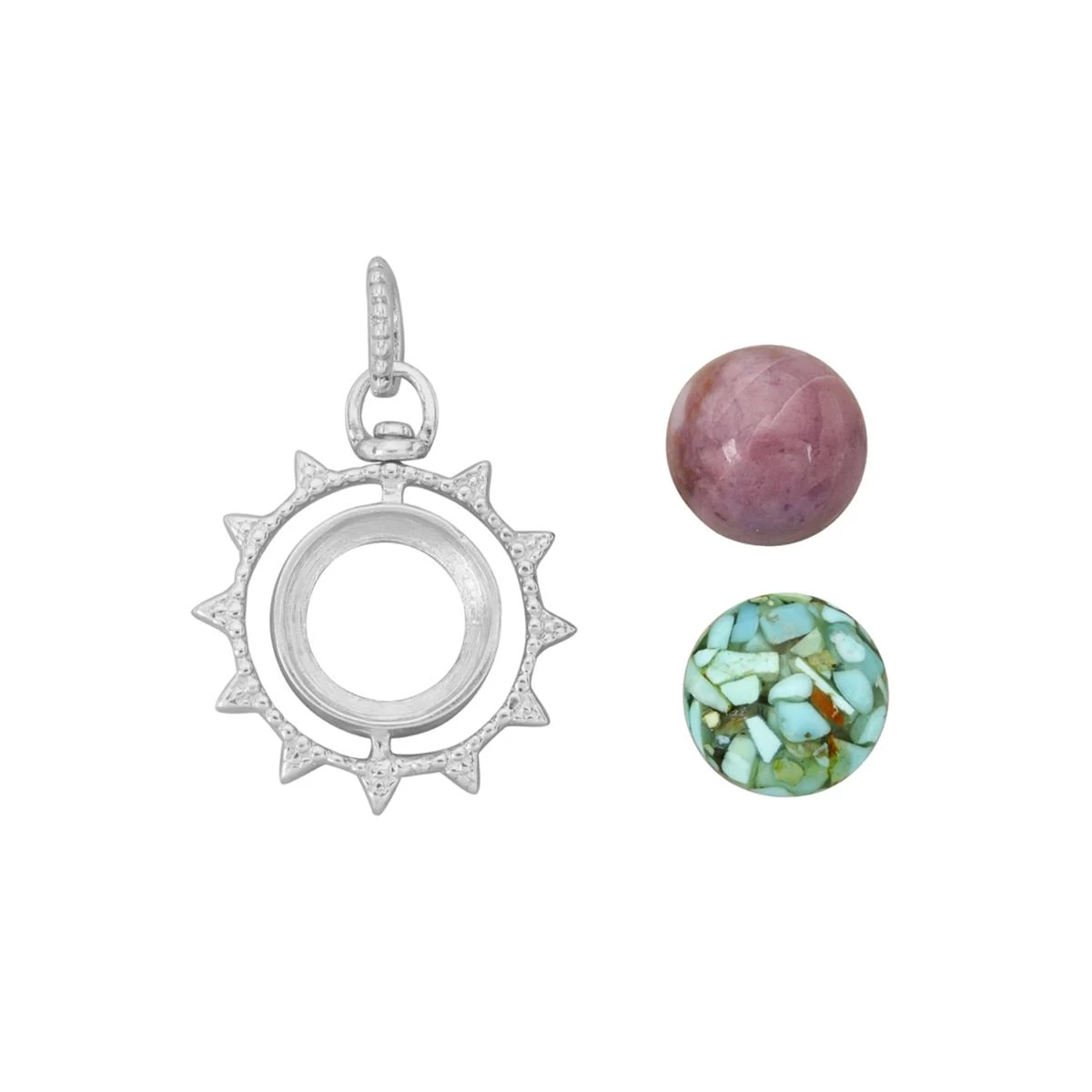 925 Sterling Silver Double Bezel Setting Pendant With Purple Jadeite & Turquoise Cabochons, Approx 10mm