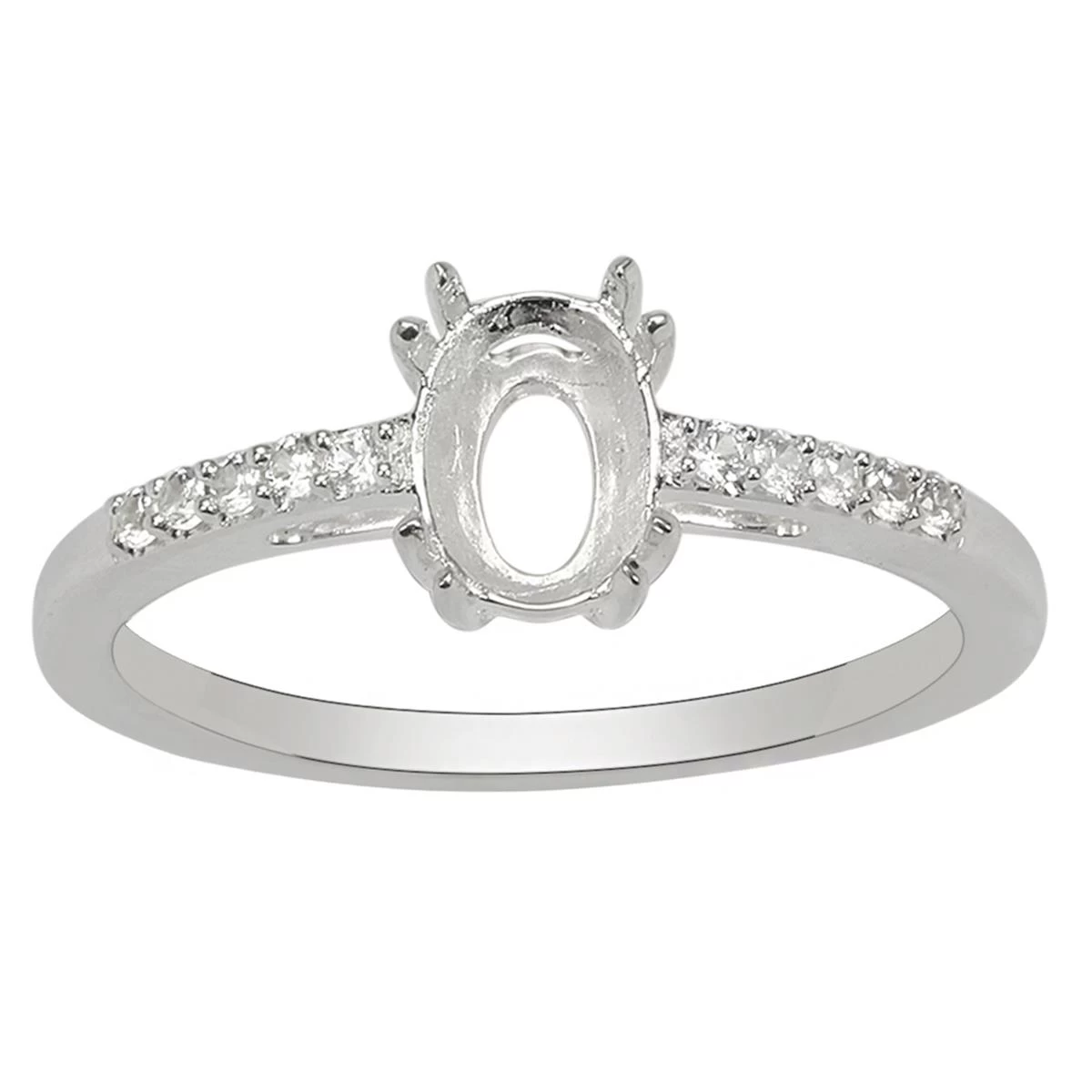 925 Sterling Silver Double Claw Ring Mount With 0.14cts White Zircon Pave (To Fit 7x5mm Oval Gemstone)