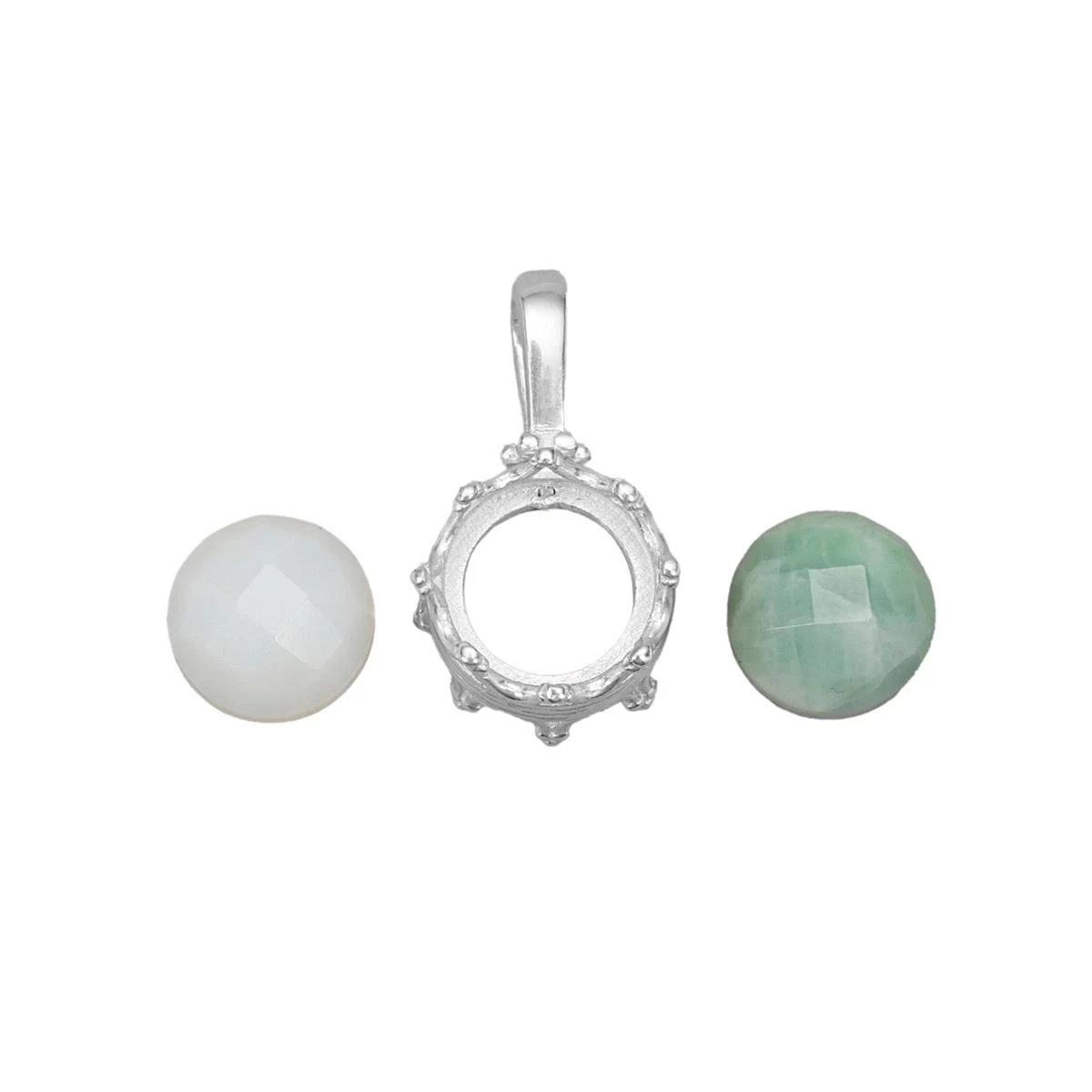 925 Sterling Silver Double Gallery Pendant Mount With 7.25cts Jade & White Opal Round Faceted Approx10mm