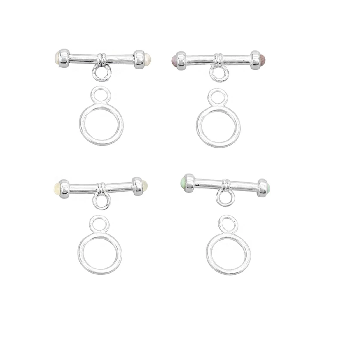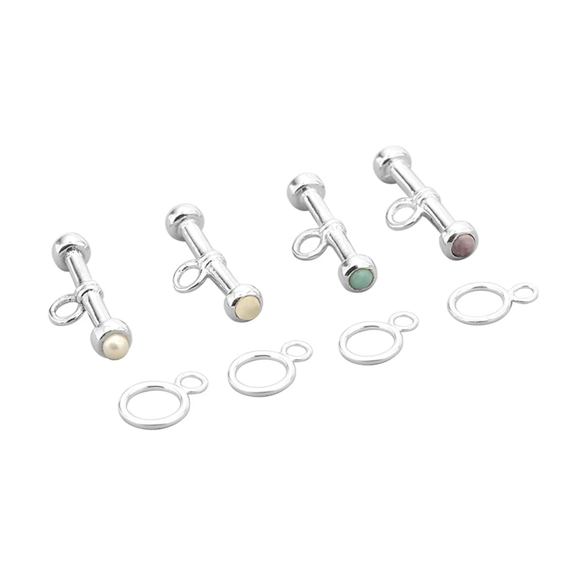 925 Sterling Silver Gemset Toggle Clasp Set With Arizona Blue Turquoise, Lavender Jade, White Onyx And Freshwater Pearl Approx 22×7.5mm To 16x11mm