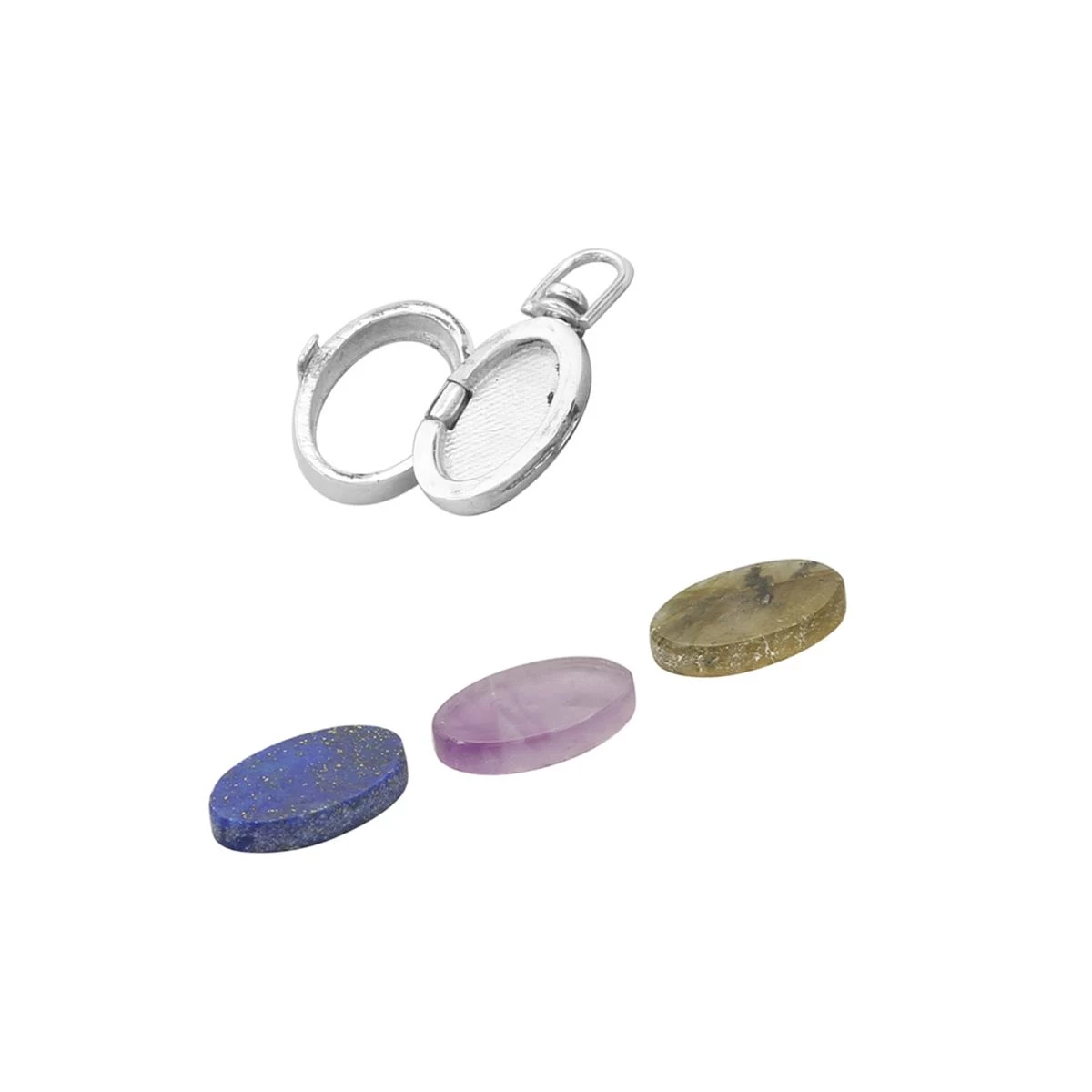 925 Sterling Silver Interchangeable Locket Pendant Approx 7.5×11.5mm 5.55cts Labradorite, Amethyst & Blue Lapis Lazuli Oval Flat