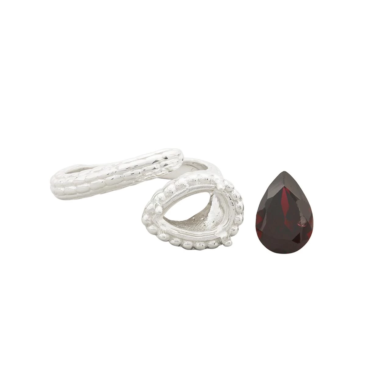 925 Sterling Silver Pear Adjustable Ring Mount With Rhodolite Garnet (To Fit 10x7mm Gemstone) 1pcs