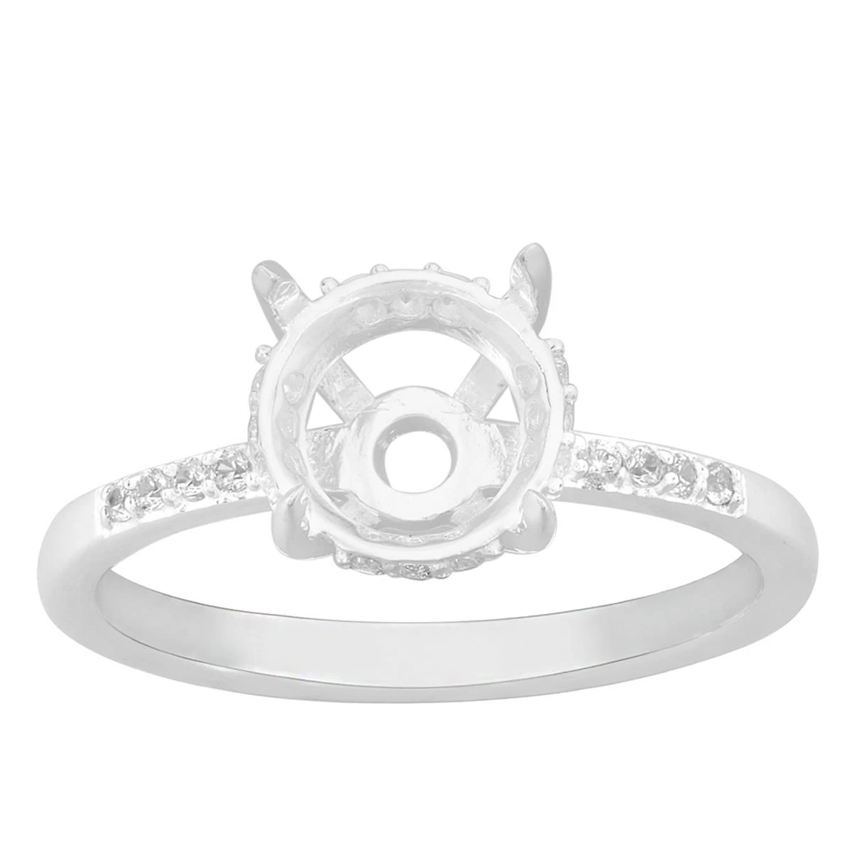 925 Sterling Silver Ring Mount With Zircon Pave (To Fit 8x8mm Round Gemstone)