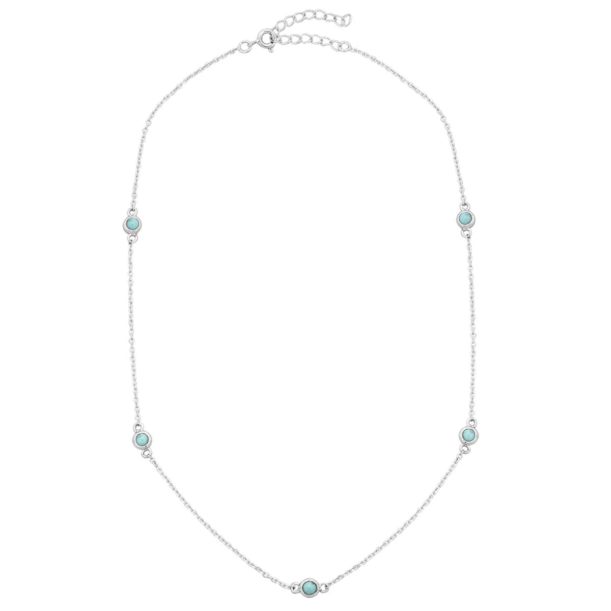 925 Sterling Silver Station Chain With 1cts Sleeping Beauty Turquoise,16+2inch