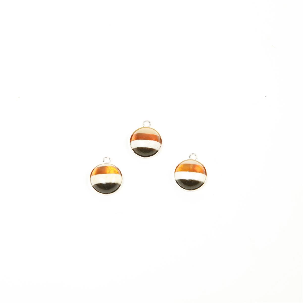 Baltic Mosaic Amber Round Cabochons With Sterling Silver Bezels, 12mm (3pk)
