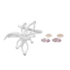 Dragon Fly Adjustable Ring With Rose De France Amethyst & Rose Quartz Approx 8x4mm To 6x3mm