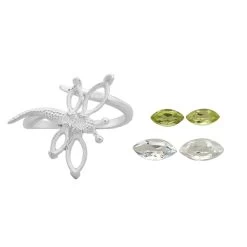 925 Sterling Silver Ring Mount With Zircon Marquise Side Detail (To Fit 5mm Round Gemstone)