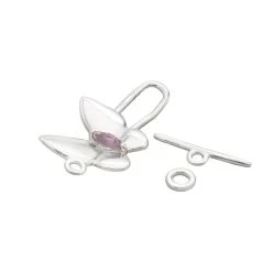 925 Sterling Silver Butterfly Toggle Clasp 28x16mm With Centre Amethyst Gemstone (Solid Wings)