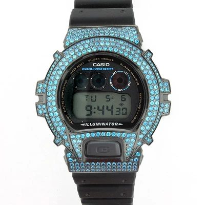 Casio Iced Out Black G-Shock Bezel With Teal Crystals