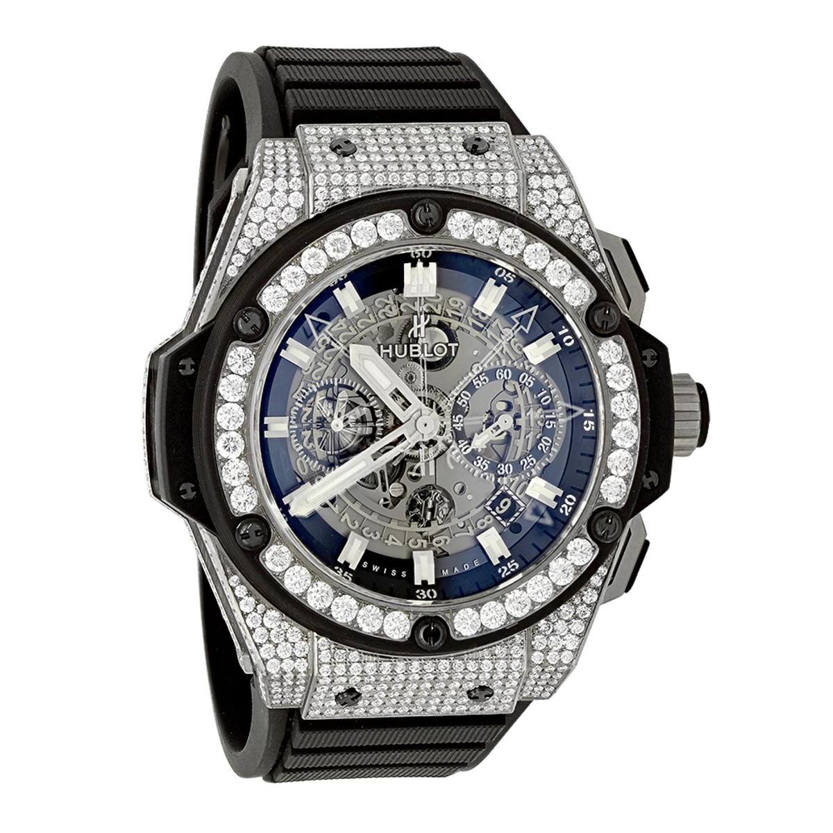 Diamond Hublot King Power Skeleton Dial Titanium Men’s Watch 7.75ct