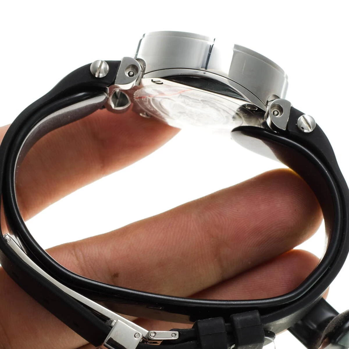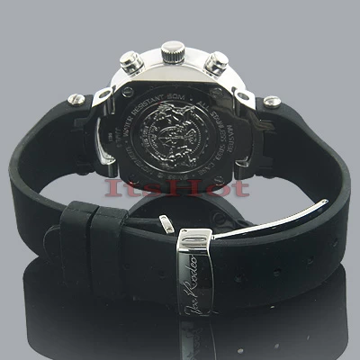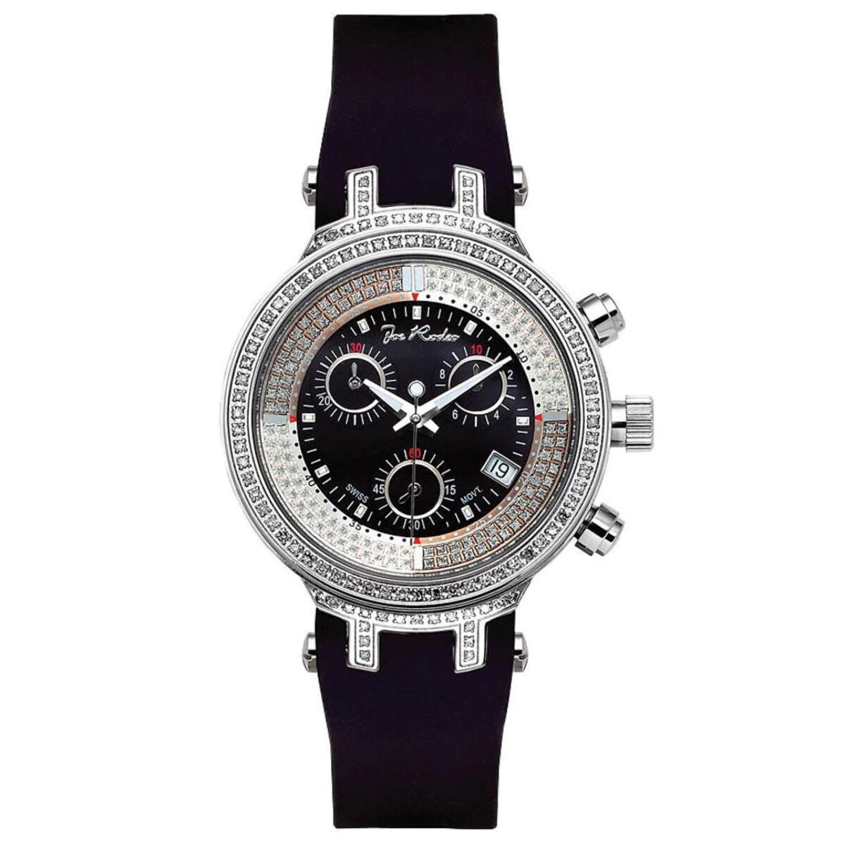 This impressive 0.90-carat diamond ladies JOJO watch features a scratch-free crystal glass, individually numbered and engraved stainless steel case-back. Diamond Bezel, polished Silver Stainless Steel case and Black dial. Fine Swiss-made quartz movement with chronograph function, center second and date. Water-resistant to 50 meters. Comes with two interchangeable straps in different colors. The patented strap adjusts once for a perfect fit, and comes on and off with the press of a button.