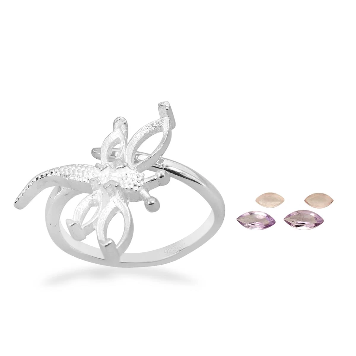 Dragon Fly Adjustable Ring With Rose De France Amethyst & Rose Quartz Approx 8x4mm To 6x3mm