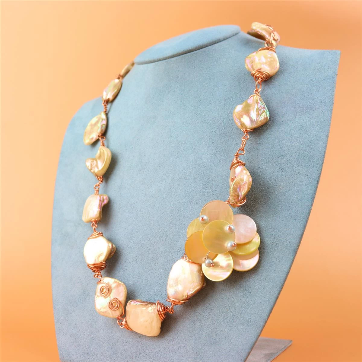 Golden South Sea Shell Necklace Approx 15mm Flat Rounds & 20mm Toggle Clasp