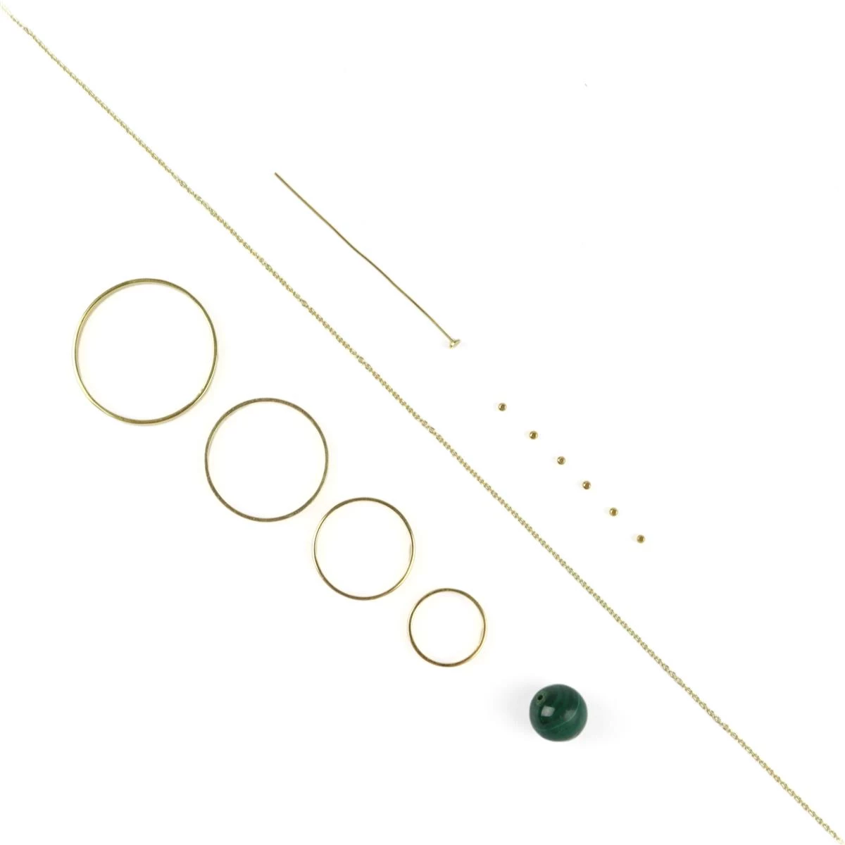 Green Planet; 16cts Malachite Atlas Bead, Gold Plated 925 Sterling Silver Flat Wire Ring ,6 X Beads ,1 X Flat Headpin & Chain
