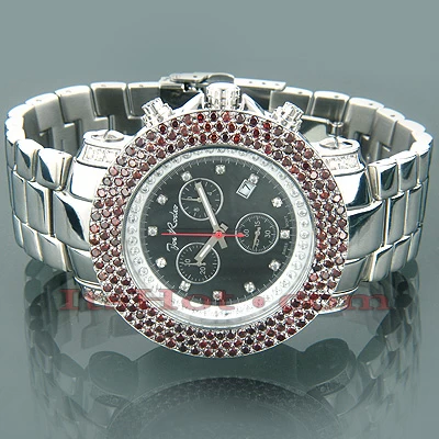 Luxurious Iced Out Watches! This Joe Rodeo Red Diamond Watch is a custom made Joe Rodeo Watch with a bezel set with 3 rows of blood red diamonds color enhanced in the lab for a more vivid look. Water-resistant to 100 meters. this men’s diamond watch from Joe Rodeo watches collection comes with two interchangeable leather straps in different colors. The patented strap adjusts once for a perfect fit, and comes on and off with the press of a button.