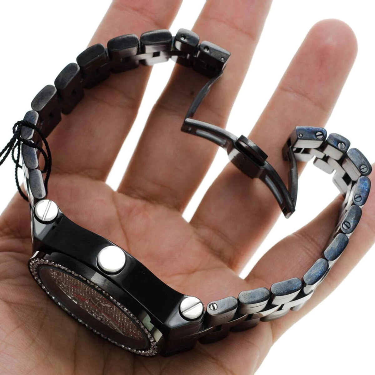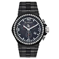 Luxurious Joe Rodeo Watches! This Phantom Men’s Diamond Watch by Joe Rodeo is a new all black stainless steel men’s diamond watch with 3.25 carats of round diamonds sparkling on its bezel. This Joe Rodeo timepiece also features a brushed black stainless steel dial with silver tone hour markers and hands and a row of sparkling white stones around it. The super accurate Swiss-made quartz movement with chronograph function will keep the time for you. This Joe Rodeo Phantom is water-resistant 100m (330 ft).