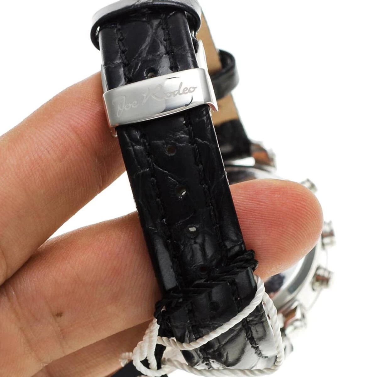 This fabulous JoJo Joe Rodeo women’s diamond watch features 0.60 carats of diamonds, a polished Silver stainless steel case and black leather band. This watch features white diamonds around the bezel and white dial paved in white stones. Accurate Japan-made quartz movement with chronograph function. This luxurious women’s diamond watch by Joe Rodeo comes with two extra interchangeable bands in different colors. Water-resistant 100m (330 ft).