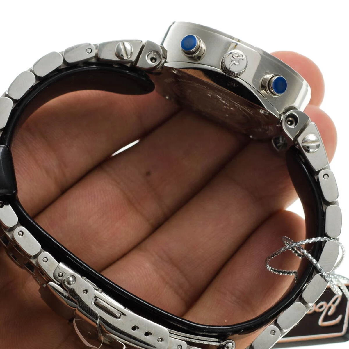 This impressive 0.90-carat Master Ladies JOJO Diamond Watch features a scratch-free crystal glass, an individually numbered and engraved stainless steel case-back, a genuine diamond bezel, a polished Silver Tone Stainless Steel case, a pink dial, a fine Swiss-made quartz movement with a chronograph function, a center second and date. This Joe Rodeo diamond watch is water-resistant to 50 meters and comes with two interchangeable straps in different colors. The patented strap adjusts once for a perfect fit, and comes on and off with the press of a button.