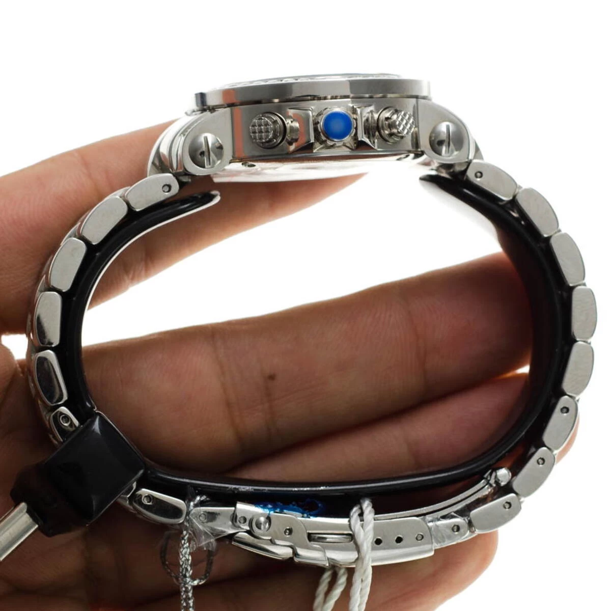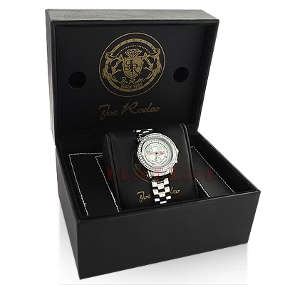 This ladies Joe Rodeo JoJo diamond watch features 2.00 carats of diamonds, a polished rounded Silver stainless steel case, scratch-free crystal glass, individually numbered and engraved stainless steel case-back. White Mother-of Pearl dial (available with black, blue, white and pink mother of pearl dials). Fine Swiss-made quartz movement with chronograph function. Water resistant to 100 m (330 ft). This luxurious women’s diamond watch by Joe Rodeo comes with two interchangeable straps in different colors. The patented strap adjusts once for a perfect fit, and comes on and off with the press of a button.
