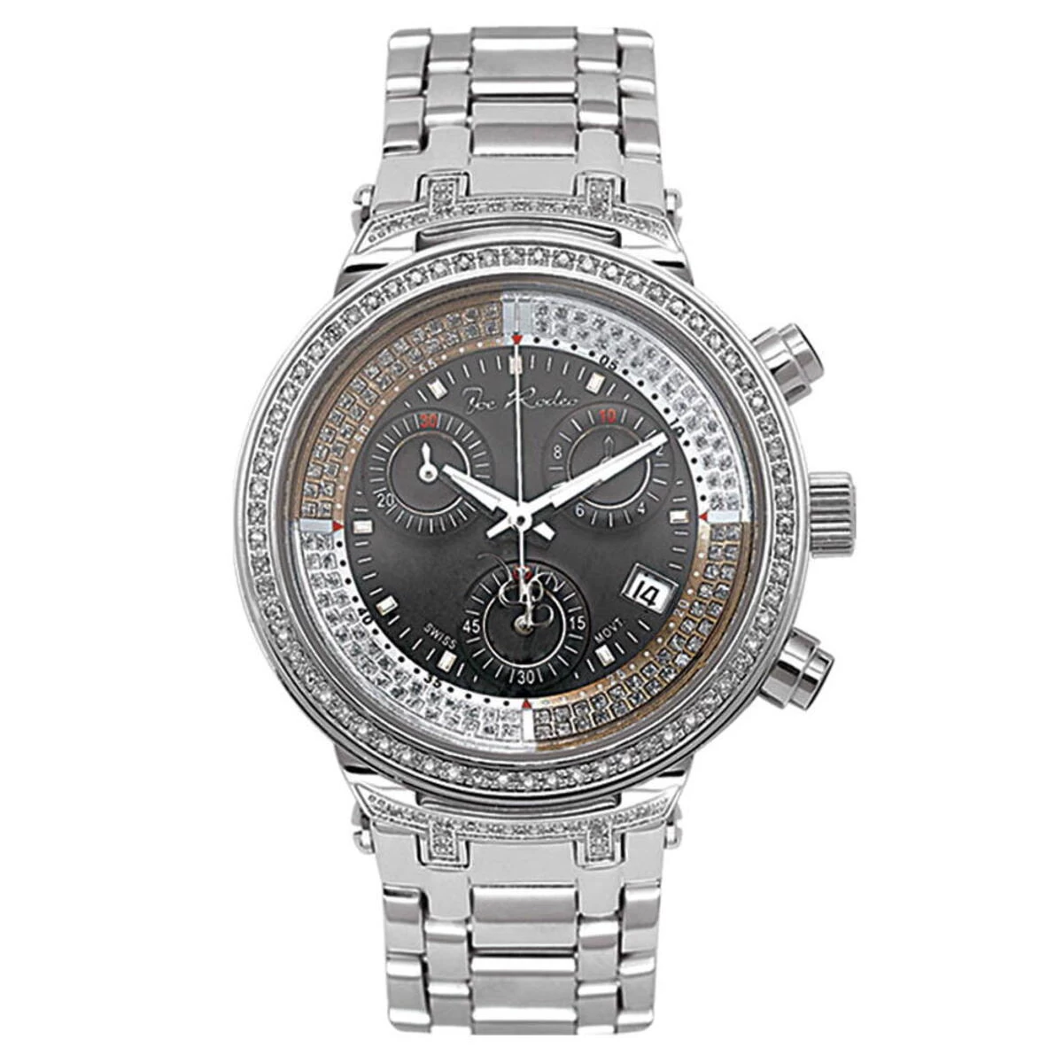 This stunning Joe Rodeo Master Black 0.90ct watch is the perfect accessory for any woman’s wardrobe. Crafted from stainless steel, this watch is sure to last for years to come. The 35mm case diameter and 20m water resistance make this watch perfect for everyday wear. The Swiss-Quartz movement ensures accuracy and reliability, while the 0.9000ct total carat weight adds a touch of elegance.The Master Black watch features a chronograph, date indicator, and second hand-indicator, making it a great choice for those who need to keep track of time. The black face and stainless steel band are the perfect combination of style and sophistication. The watch is also equipped with a fold-over clasp for added security.This Joe Rodeo Master Black 0.90ct watch is the perfect addition to any woman’s wardrobe. Whether you’re looking for a classic timepiece or something a bit more modern, this watch is sure to make a statement. With its timeless design and quality craftsmanship, this watch is sure to become a favorite for years to come.