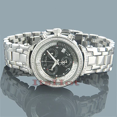 Large Face Luxurman Diamond Watch Chronograph 0.25ct For Men