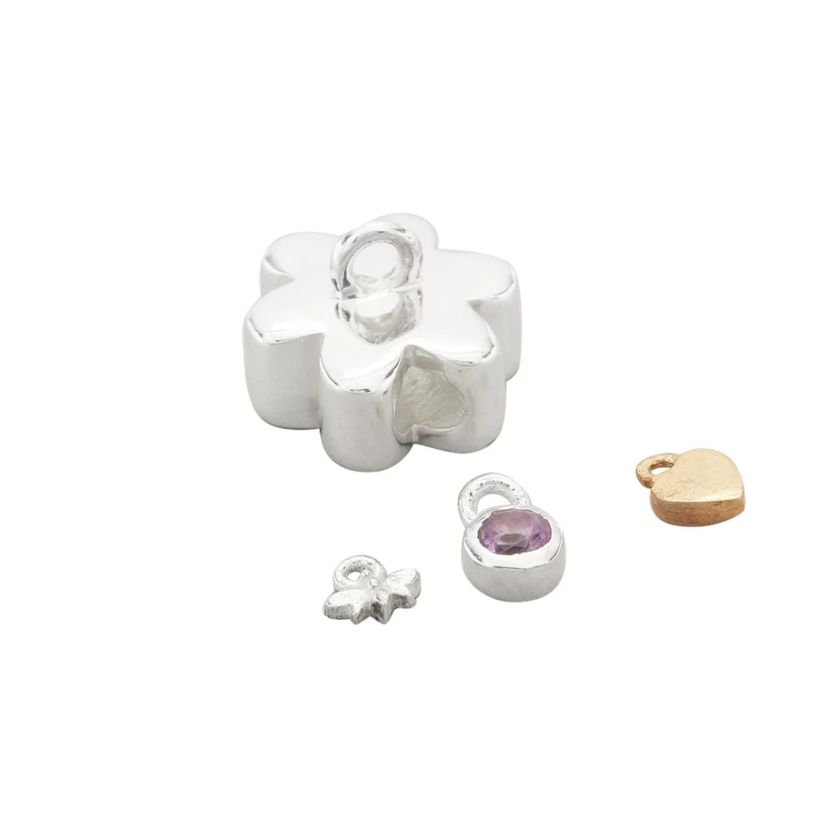 Limited Edition Claire Macdonald 925 Sterling Silver Flower Spacer Bead Approx 12x13mm With 3x Charm