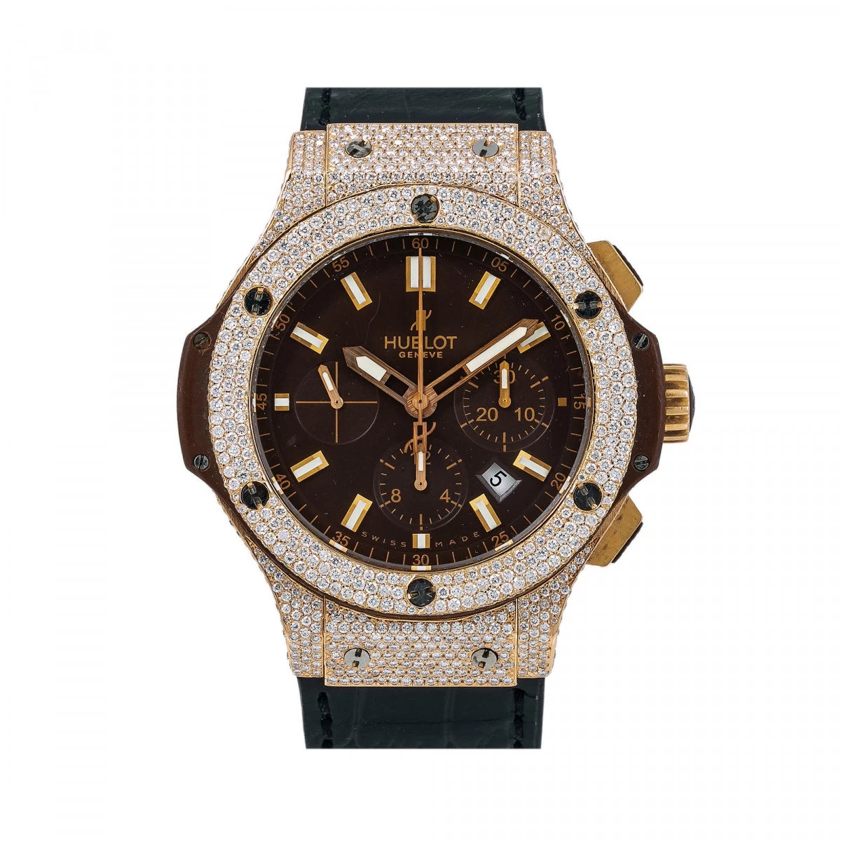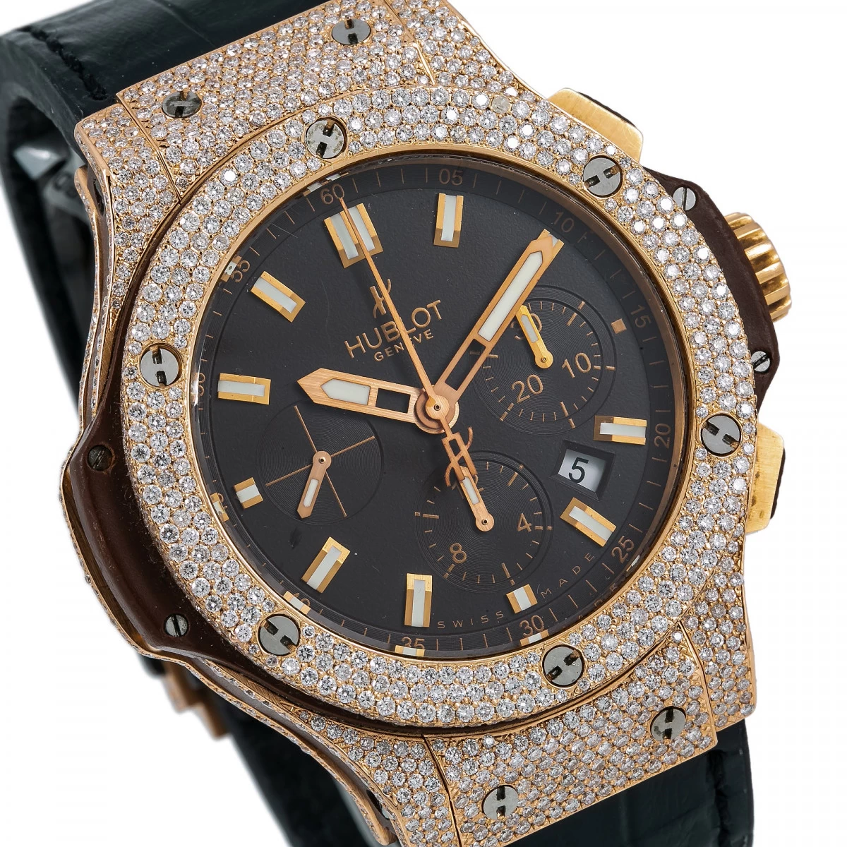 Men’s Diamond Watch Hublot Big Bang 18K Gold 41mm Brown Dial