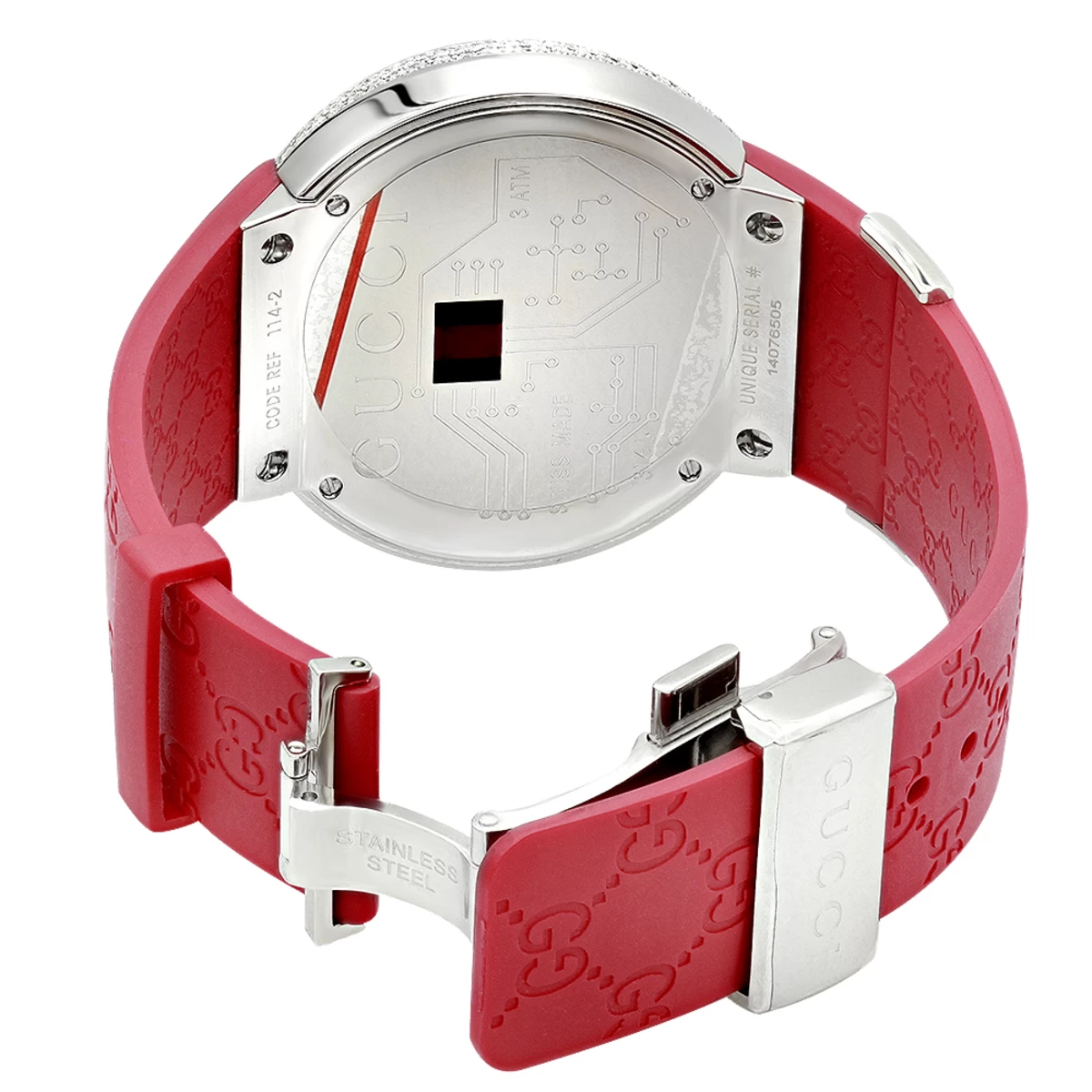 Men’s Gucci I-Gucci Luxury 3.10ct Diamond Watch With Digital Steel Case & Red Rubber YA114212