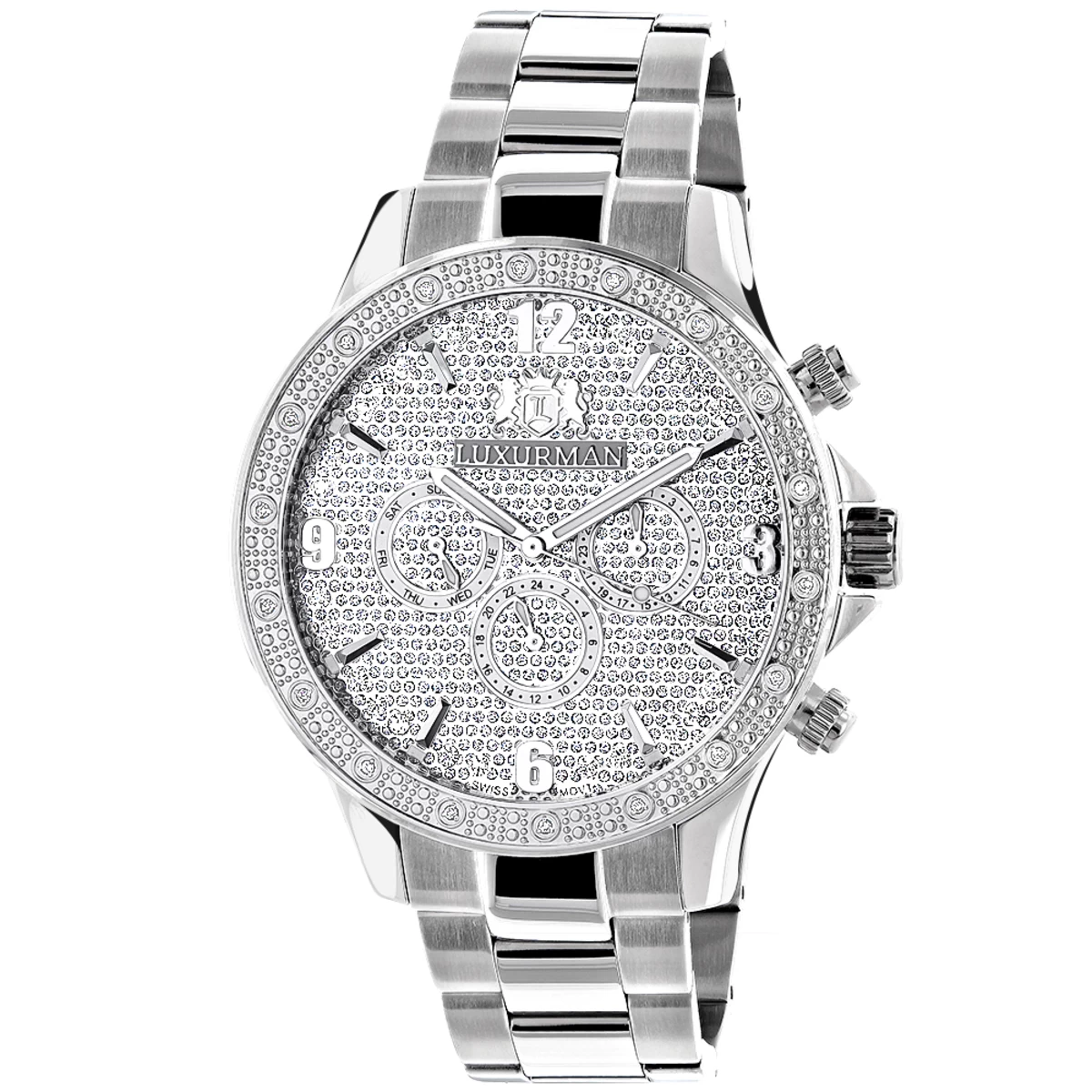 Men’s Real Diamond Watch By Luxurman Liberty 0.2ct Swiss Mvt W Steel Band