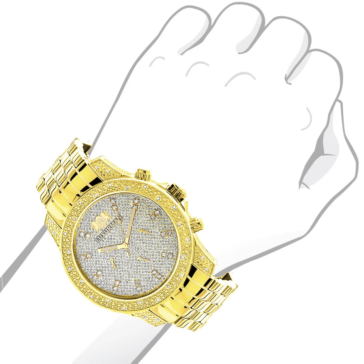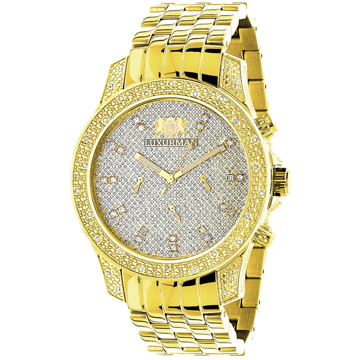Men’s Yellow Gold Tone Watch With Diamonds 0.50ct Luxurman