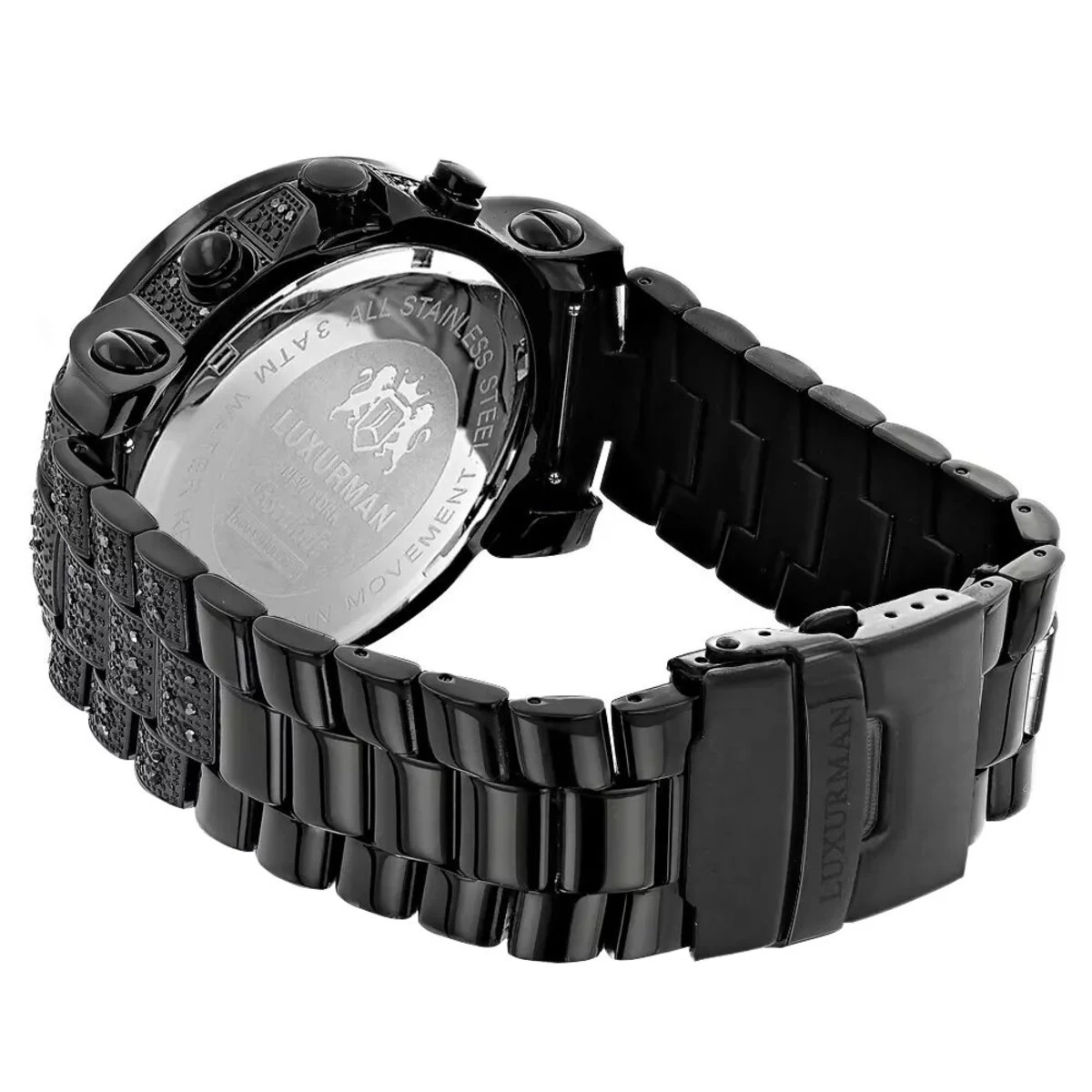 Oversized Iced Out Black Diamond Men’s Watch By Luxurman 2ct Fully Paved