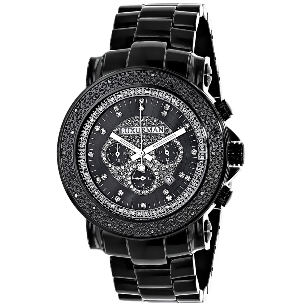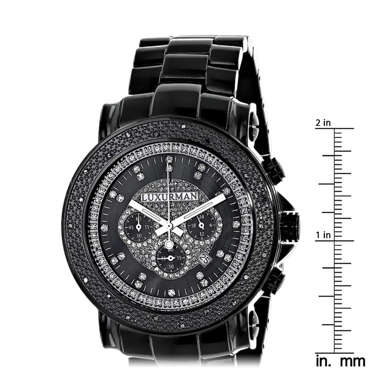 Oversized Luxurman Men’s Black Diamond Watch 0.25ct
