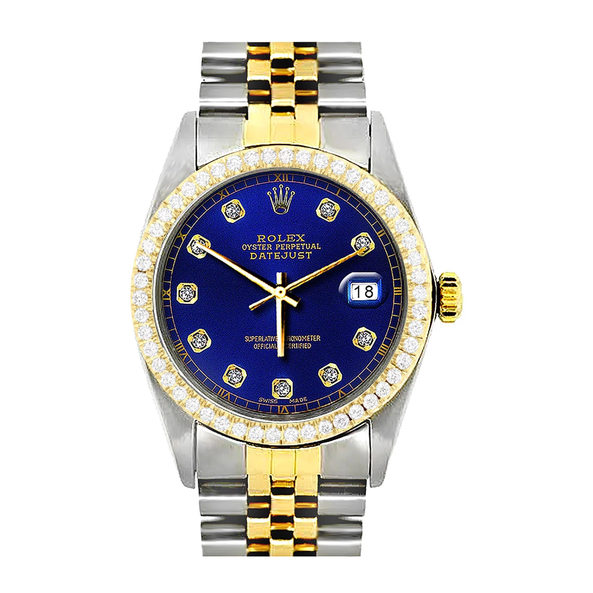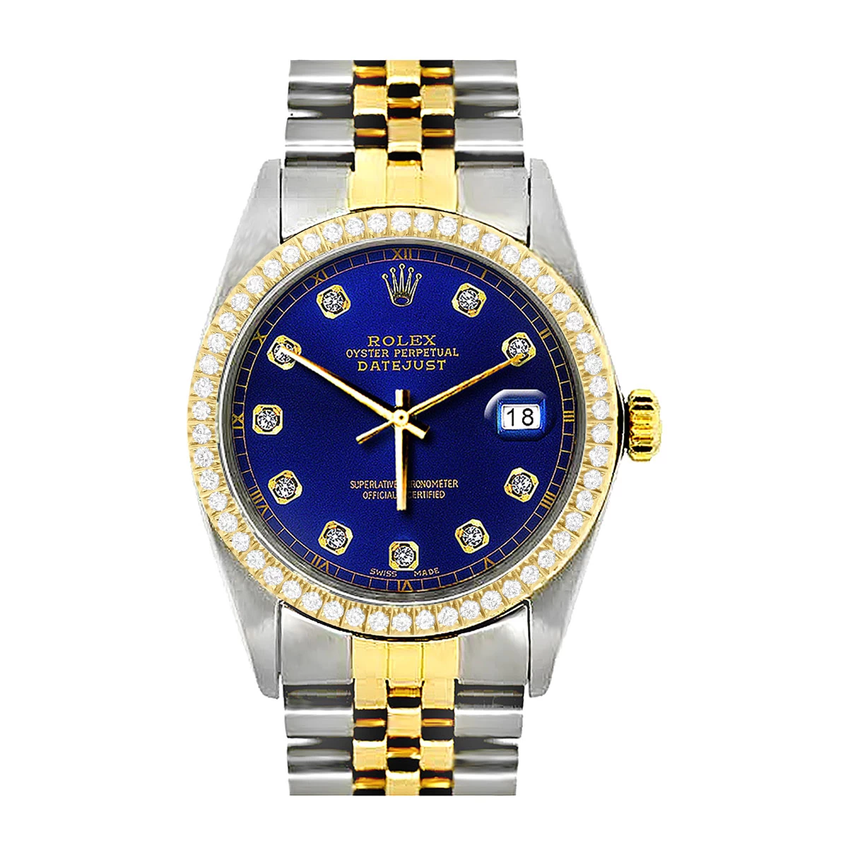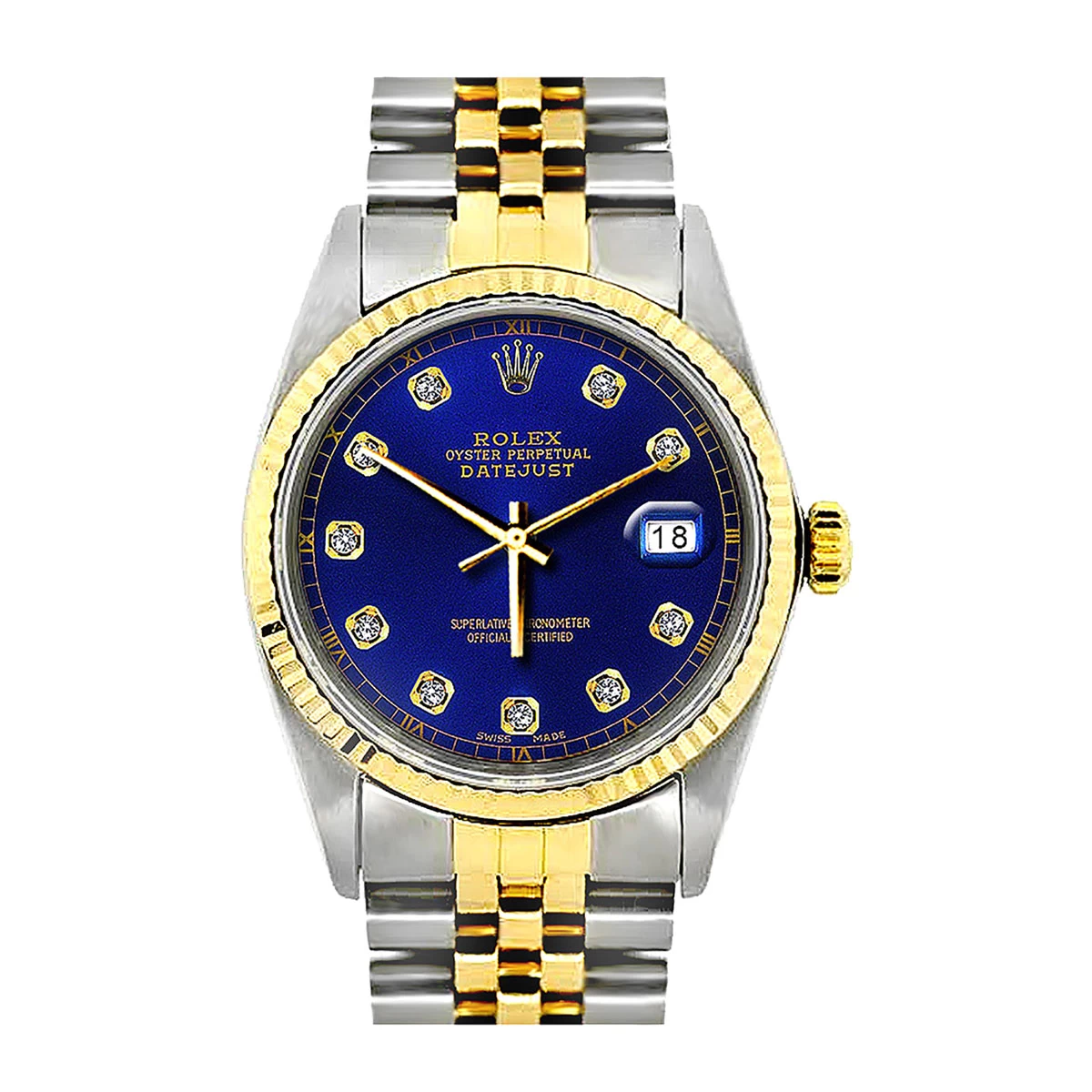 Rolex Datejust Men’s Diamond Watch Stainless Steel & Gold Blue Dial 36mm